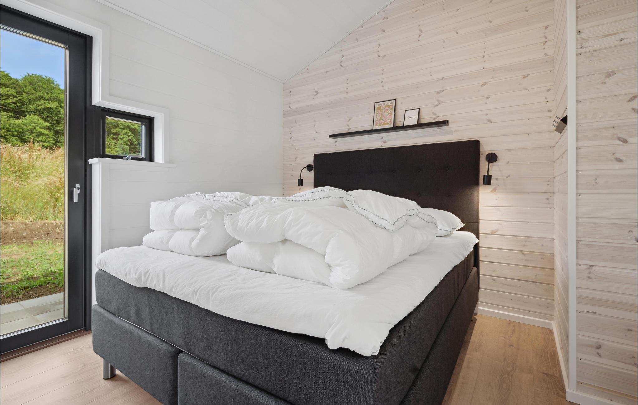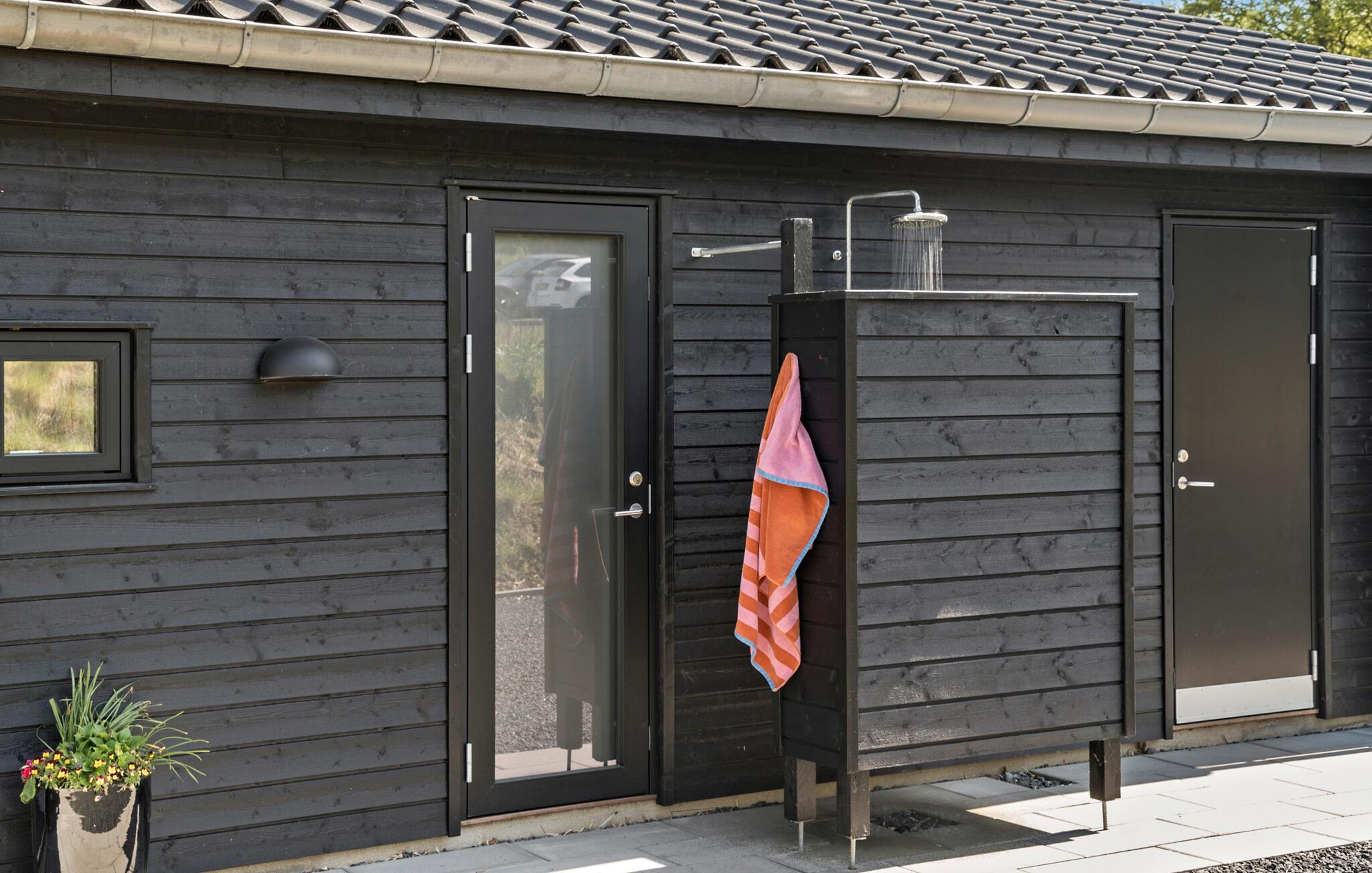 Dette rummelige feriehus byder jer velkommen i Grønninghoved tæt på sandstranden. Lyset strømmer ind gennem de store gulv-til-loft-vinduer og skaber en beroligende atmosfære med maksimal udsigt, og den brune hjørnesofa tilføjer et strejf af varme. Der står hyggelig fælles madlavning på programmet og dejlige måltider ved spisebordet, som også er ideelt til en sjov spilleaften. Efter en lang dag på stranden eller en udflugt kan I tænde op i brændeovnen om aftenen. Tilbring vidunderlig familietid i haven og på den dejlige terrasse, hvor I kan sole jer på liggestolene og se jeres børn hoppe på trampolinen eller spille fodbold. Den børnevenlige sandstrand kan hurtigt nås til fods, og når I kommer tilbage, kan I skylle sandet af under den udendørs bruser.