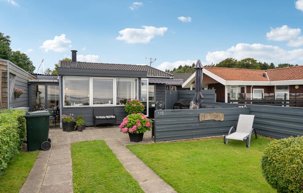 Der er en flot udsigt over Lillebælt fra dette sommerhus, som ligger tæt ved Binderup Strand.