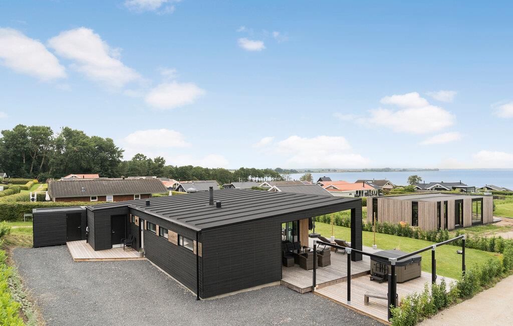 Moderne sommerhus med havudsigt og kort afstand til strand og legeplads.