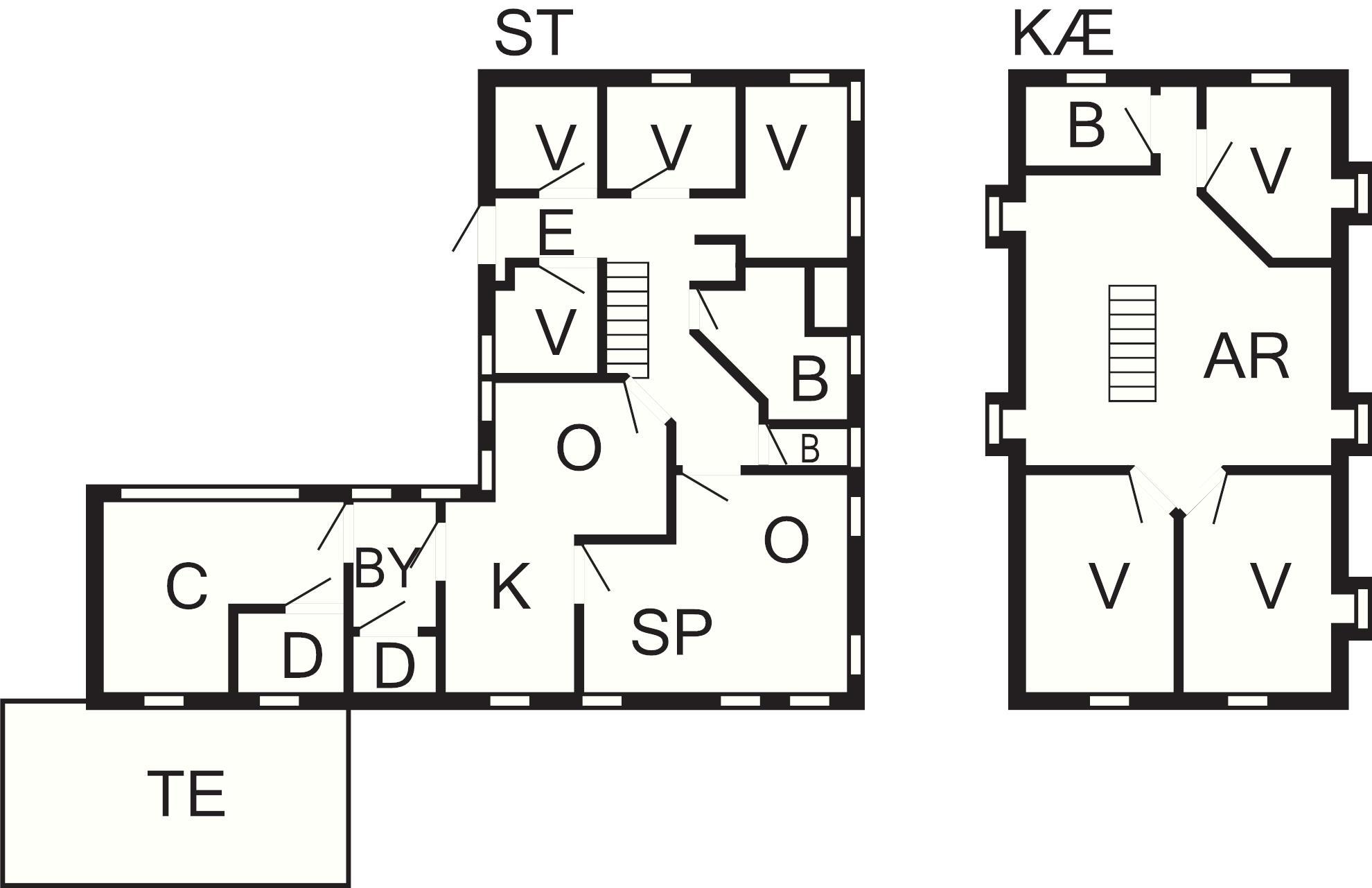 7 Soveværelser: (2S)+(2S)+(2S)+(2S)+(1DS+2S)+(1DS+2S)+(2S), barneseng, barneseng