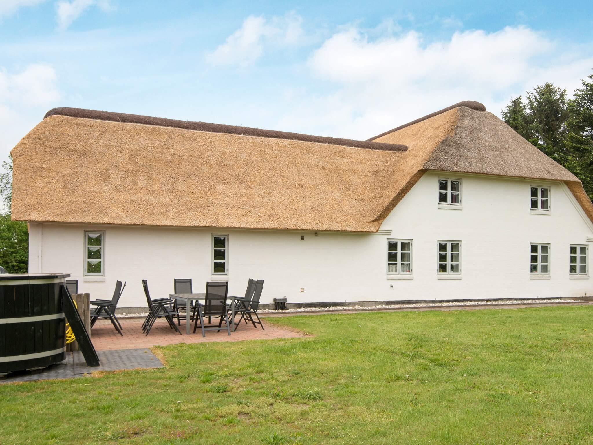 Rummeligt stråtækt sommerhus til 18 personer med vildmarksbad, aktivitetsrum og egen sø og stor jagthytte beliggende på stor grund ved Gram. Sommerhuset er indrettet med åbent køkken/alrum, to opholdsstuer med tv, en spisestue, syv soveværelser og tre badeværelser. Der er desuden et stort aktivitetsrum på 1. sal, hvor I kan spille bordfodbold. Sommerhuset ligger på en stor grund med egen sø, hvor der gerne må fiskes (medbring egne fiskestænger). Ved søen ligger en hyggelig, rustik jagthytte. Her kan der grilles og dækkes op til hele familien. I den store, lukkede have finder I et vildmarksbad, hvor I efter en lang dag kan nyde et varmt bad i skønne omgivelser. Udlejes ikke til ungdomsgrupper.