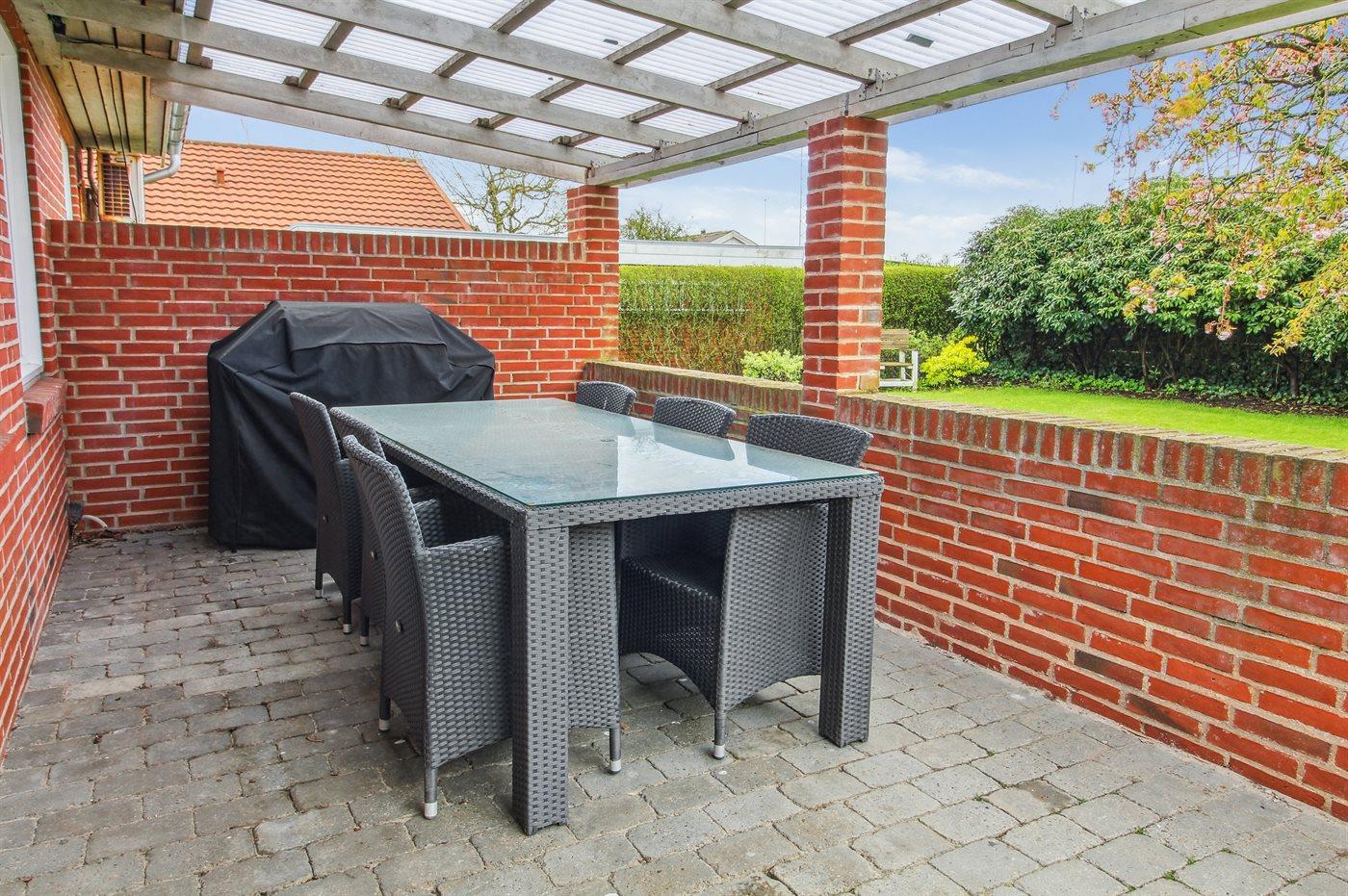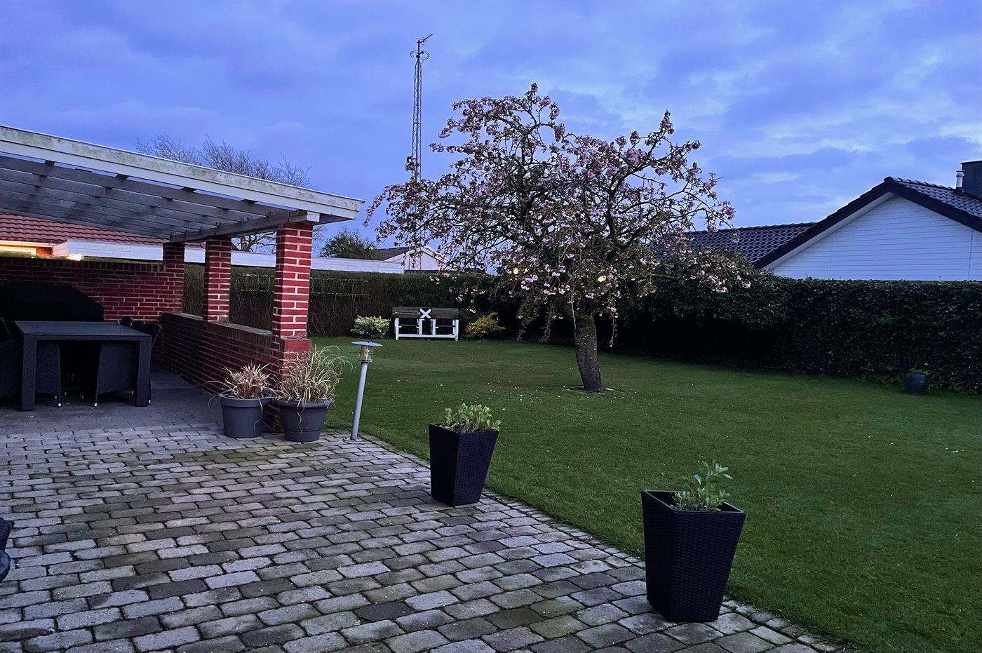 Ferieboligen er beliggende på en 795 m² stor havegrund. Der er 8600 m til havet. Der er 8600 m til Vadehavet. Der er en sø i en afstand af 300 m. Nærmeste forretning er beliggende i en afstand af 500 m. Der er en golfbane i en afstand af 8000 m. Til ferieboligen hører åbent terrasseareal. Desuden er der overdækket terrasse. Der ligger en legeplads i en afstand af 200 m. Grill til rådighed. Der er carport til rådighed. Der er installeret stik til opladning af elbil. Type 2 stik. Med 11 kW ladeeffekt. Parkering ved ferieboligen.