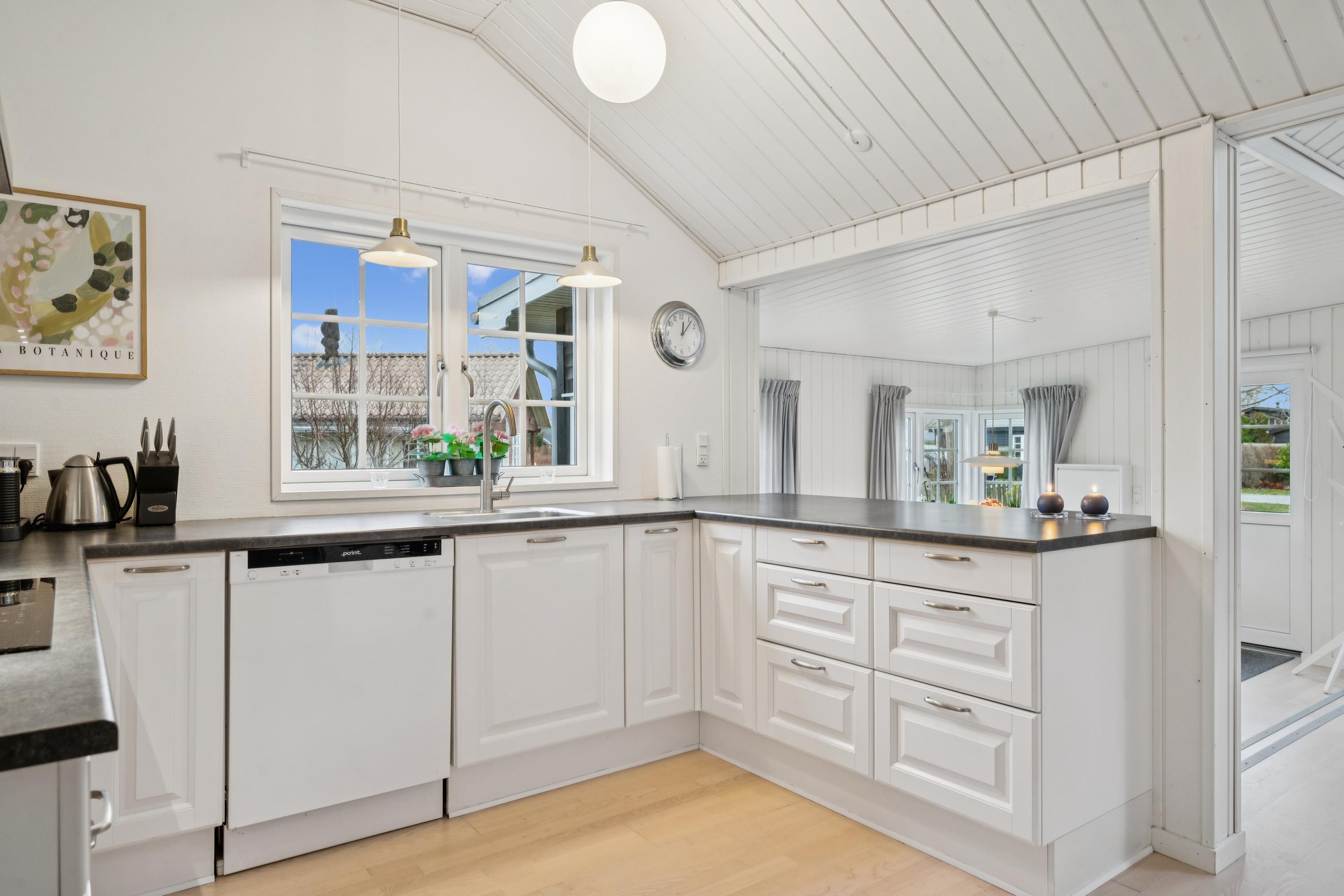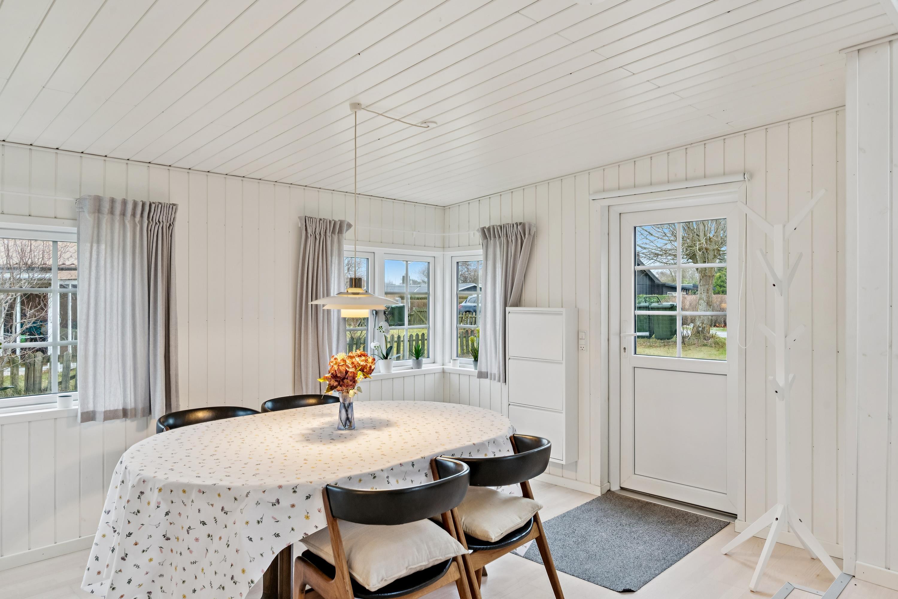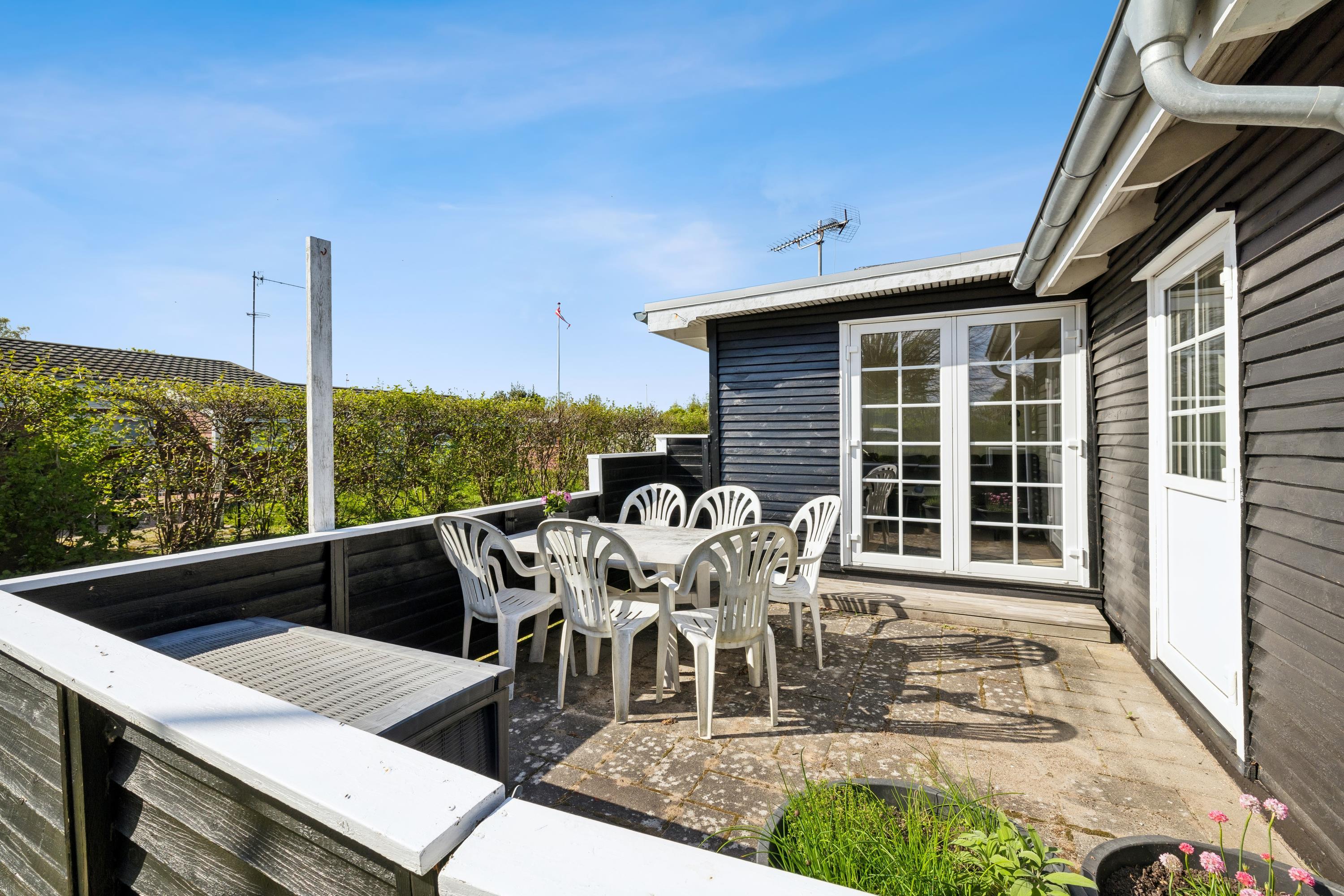 Tæt på en af Jyllands bedste badestrande finder man dette hyggelige feriehus. Her bliver man budt indenfor i en dejlig stue i to plan. Hyggelig møbleret opholdsstue med brændeovn og varmepumpe med udgang til terrasse samt en god spiseafdeling. Flot køkken med b.la. opvaskemaskine. Husets sovepladser finder man i tre værelser. Stort badeværelse med bruseniche, gulvvarme og vaskemaskine samt udgang til haven. Ved huset er der flere terrassearealer med havemøbler og overdækket veranda. Stor græsplæne velegnet til leg og udendørsaktiviteter.