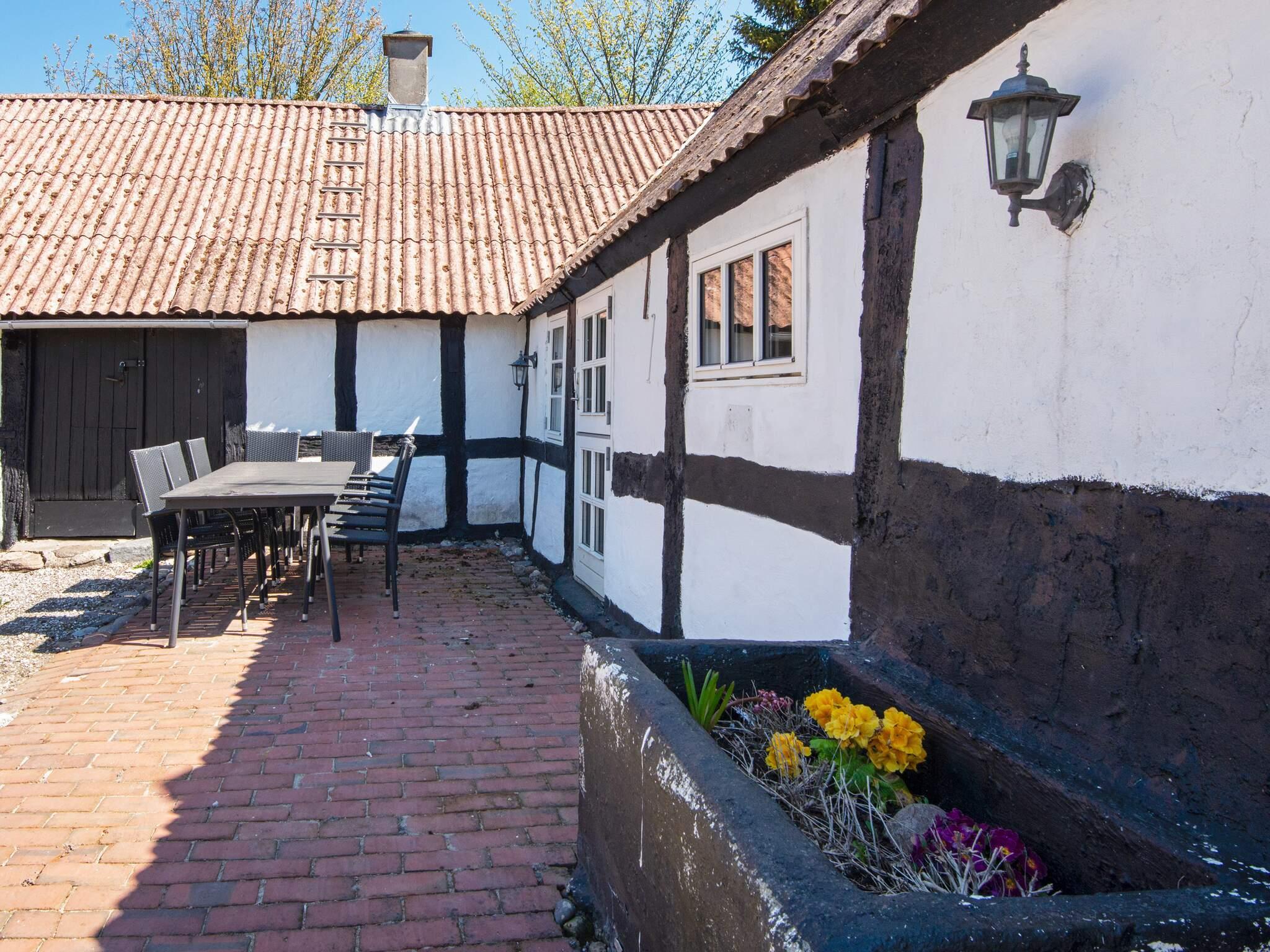 Der er 3 soveværelser: et med dobbeltseng, et med 3 enkeltsenge og et med sovesofa og 2 enkeltsenge på hemsen. Der er terrasse i gården og i haven. I denne 2-længede ejendom kan I virkelig opleve tidens vingesus.