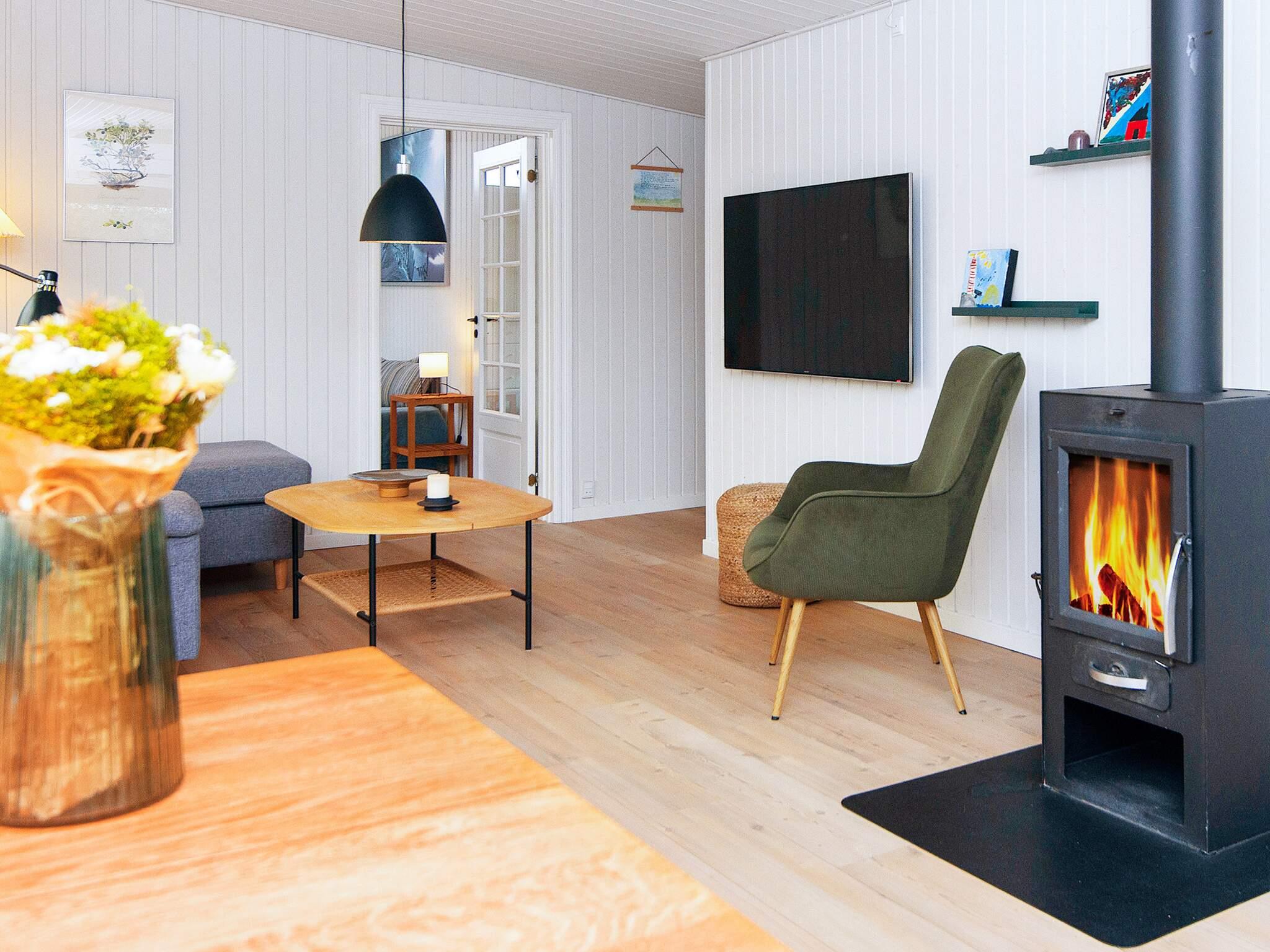 1 Opholdsstue: Brændeovn, Chromecast, tv