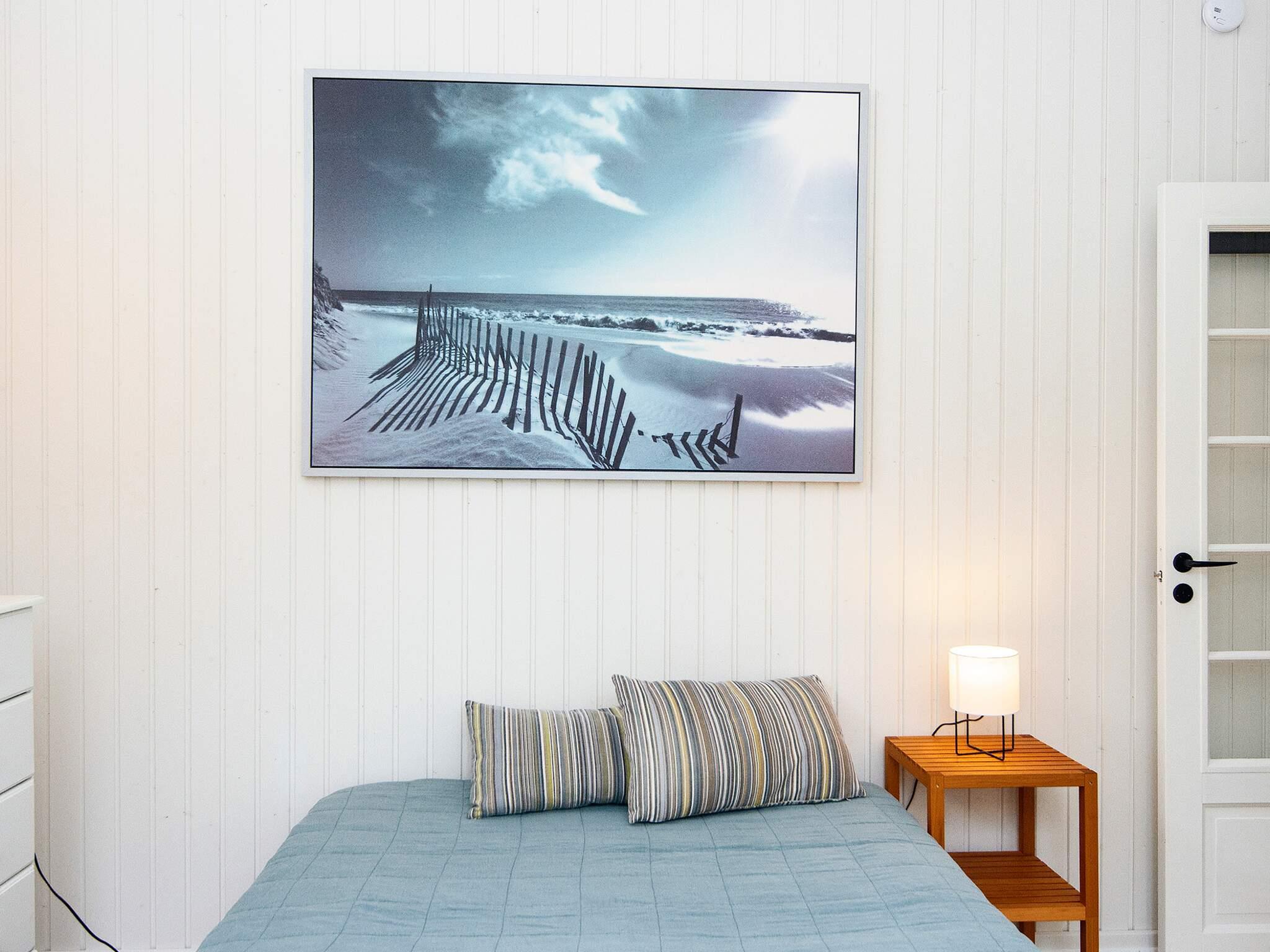 Indenfor finder du et lyst og rummeligt 32 kvadratmeter stort køkken og spiseplads, perfekt til at lave mad og samles efter en dag ved havet. En hyggelig stue på 20 kvadratmeter inviterer dig til at slappe af, uanset om du ser tv eller streamer dine yndlingsprogrammer over den gratis WiFi-forbindelse. Boligen har tre soveværelser og et velindrettet badeværelse med bruser, der giver alt hvad du behøver for et behageligt ophold.