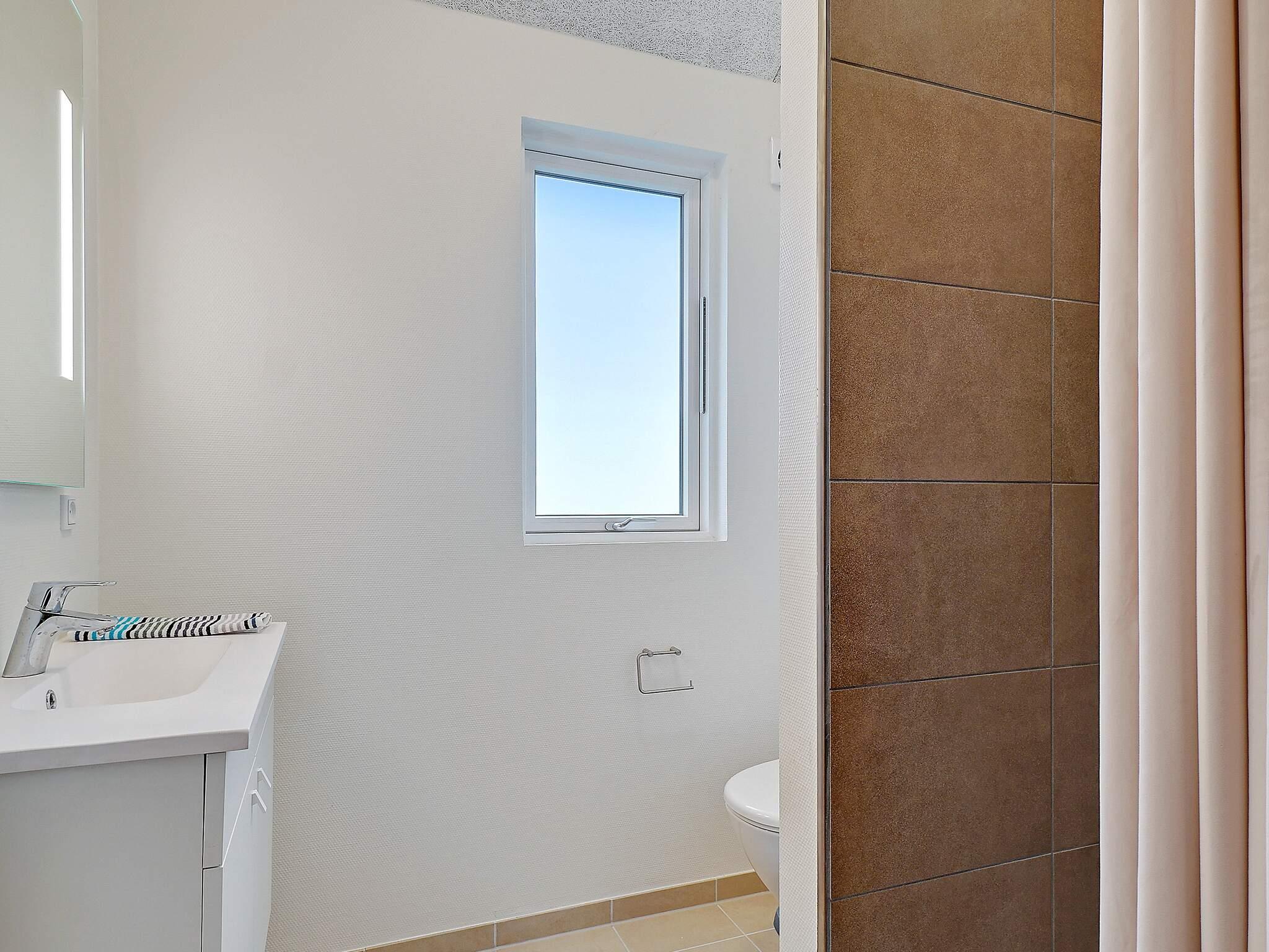 Huset er yderst rummeligt og veldimensioneret og bygget op omkring to separate soveafdelinger. Hver afdeling har et badeværelse, og der er et ekstra badeværelse i forbindelse med poolafdelingen. I alt fire badeværelser, der selvfølgelig alle har gulvvarme. Huset opvarmes i øvrigt med varmepumpe.