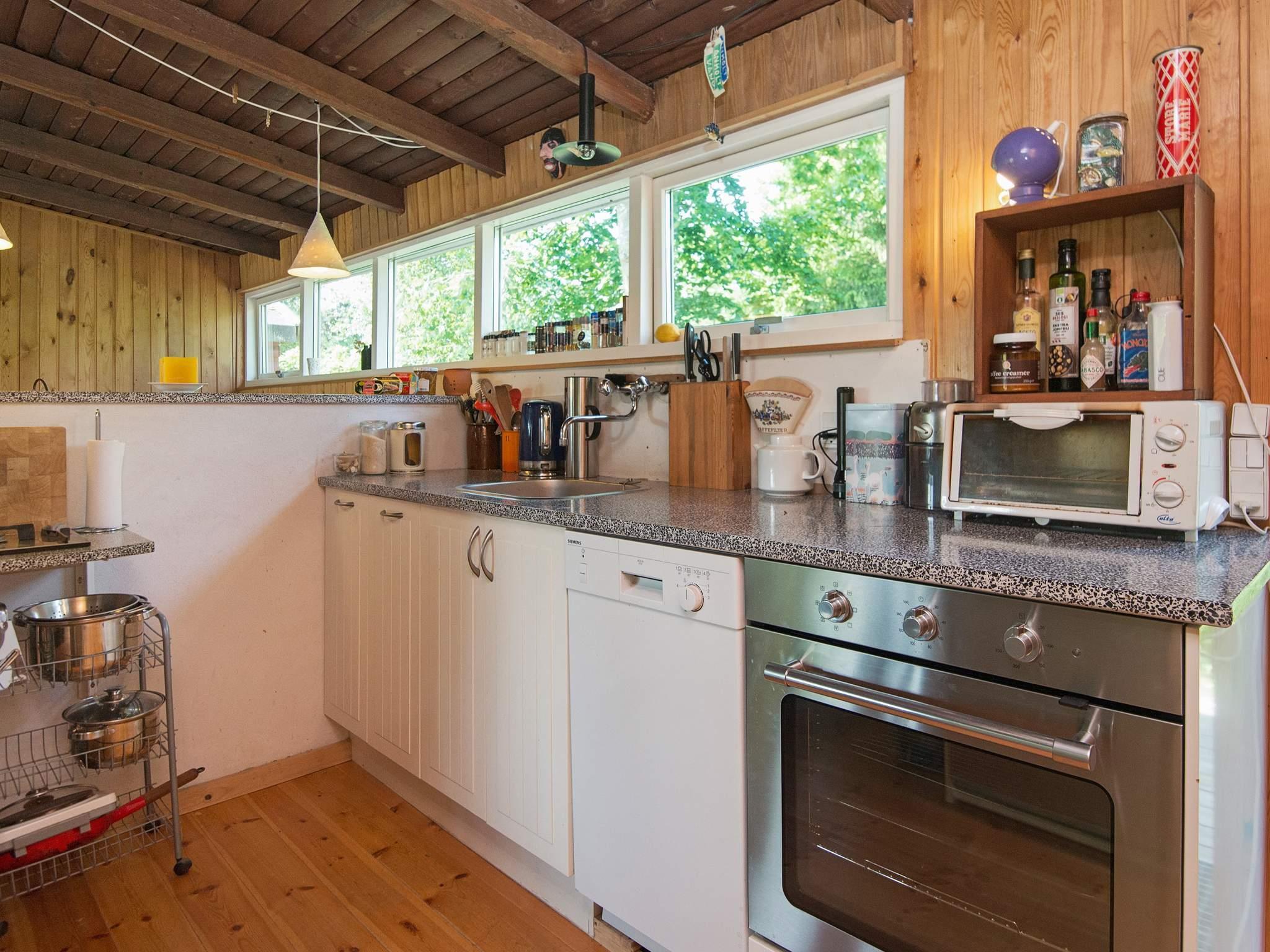 Lille sommerhus med en charmerende grund. Huset består af stue og åbent køkken med et lille spisehjørne og direkte udgang til husets to terrasser fra både køkken og stue. Det vil altid være muligt at finde en krog, hvor I kan sidde og nyde den danske sommer. Huset ligger i nærheden af Kattegatcentret.