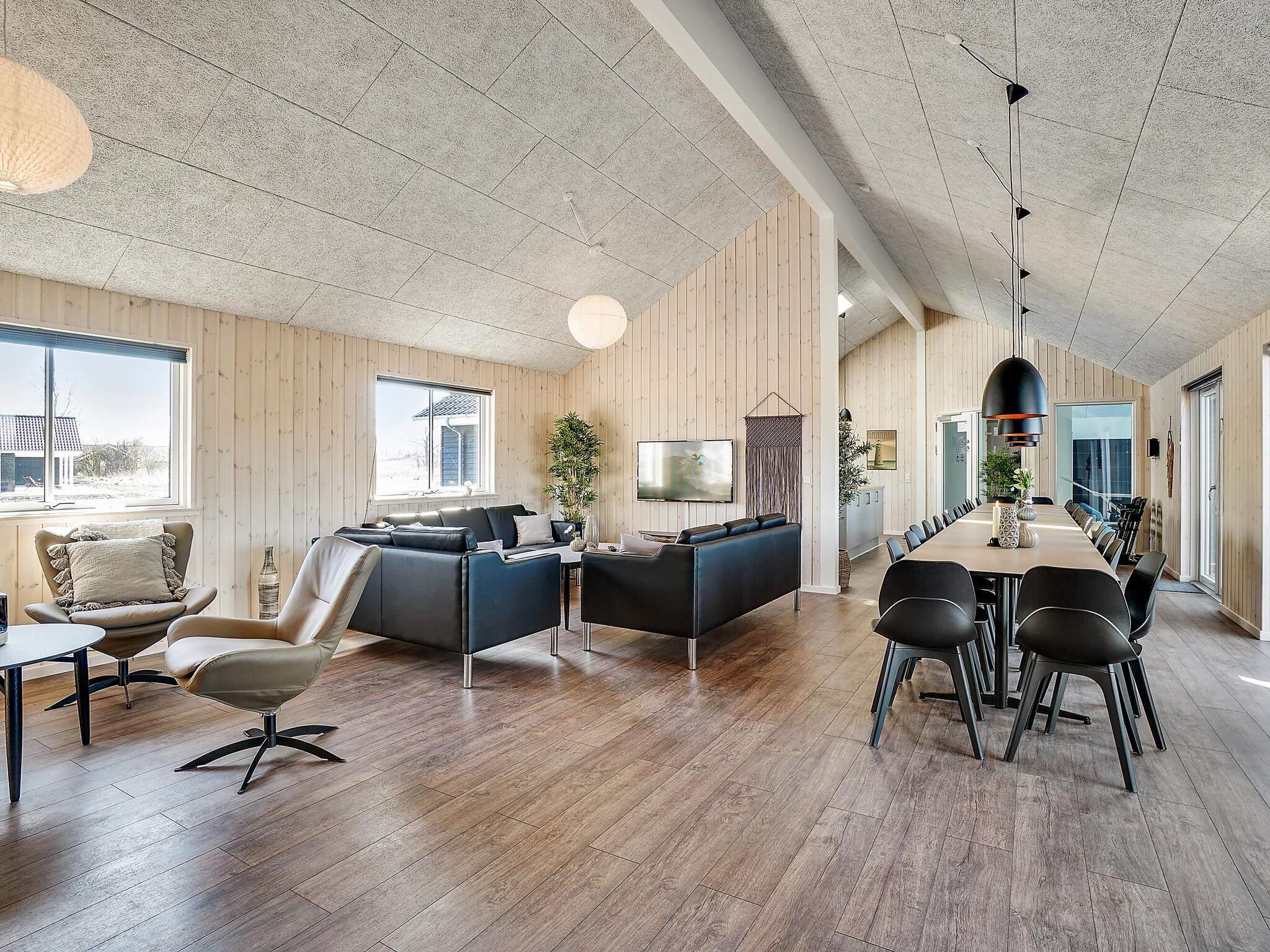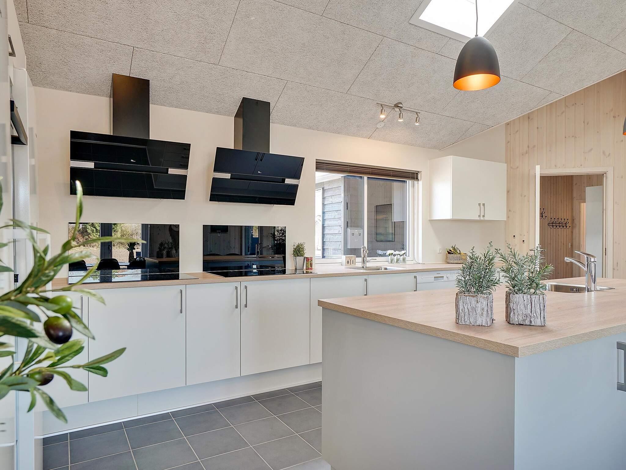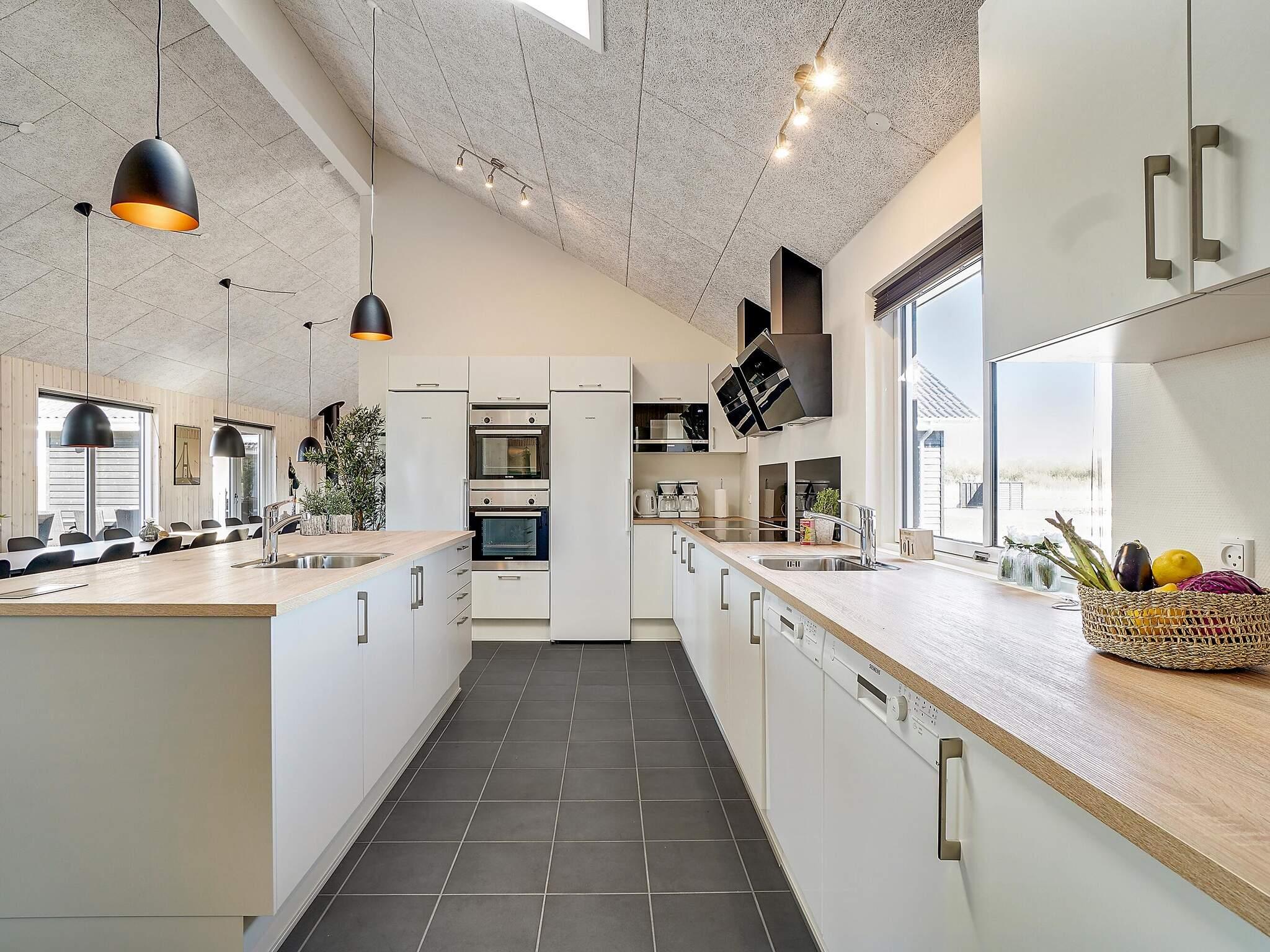 Midt i sommerhuset finder I køkkenet/alrummet med et veludstyret køkken, en hyggelig sofagruppe, samt et langt spisebord med plads til 30 personer, så hele familien kan nyde måltiderne sammen. Med to ovne, komfurer, vaske, opvaskemaskiner og masser af køleskabsplads er det nemt at tilberede lækker mad til mange mennesker.