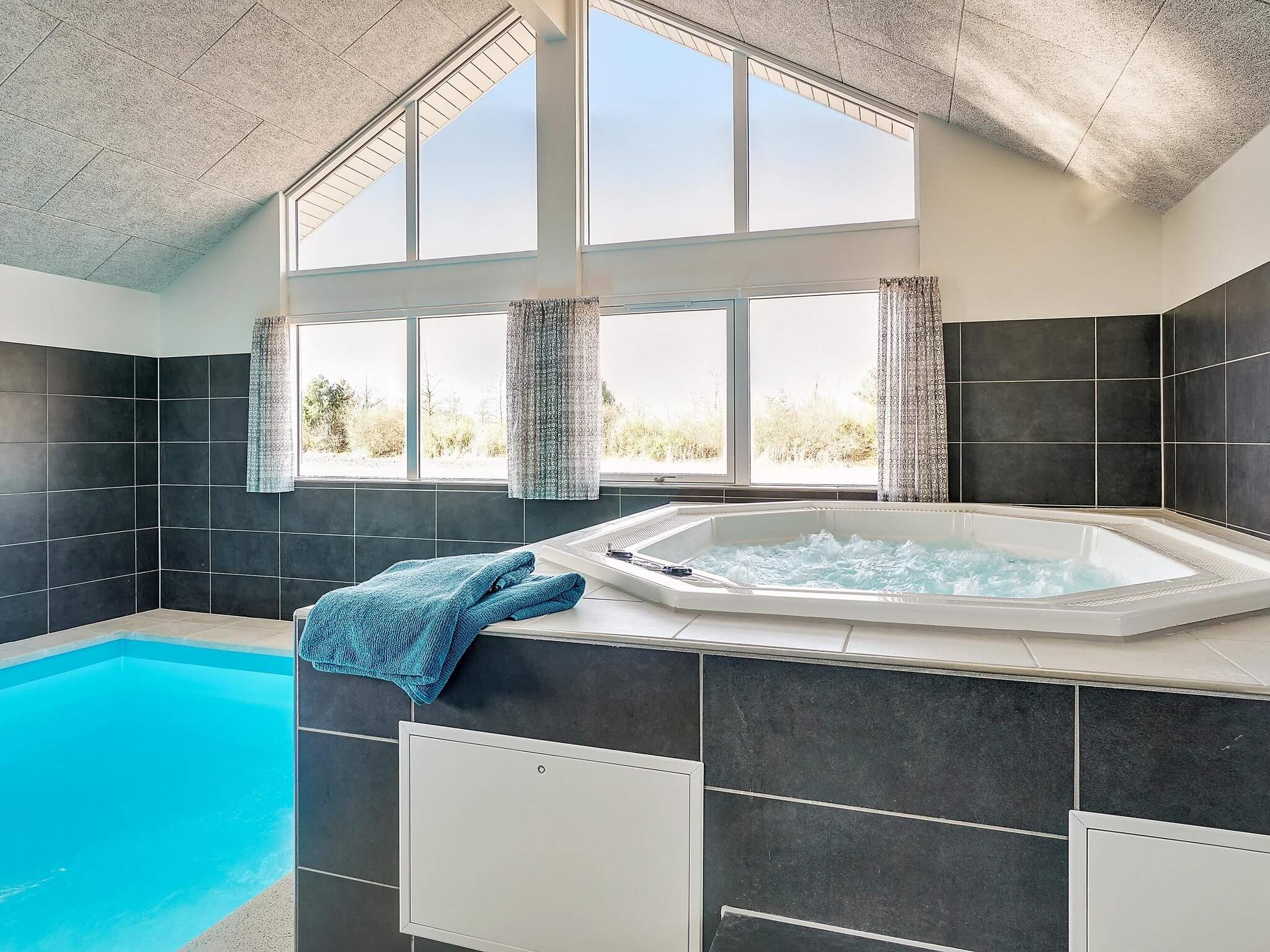 For wellnesselskere er sommerhusets poolrum et paradis for afslapning. Tag en dukkert i spabadet eller nyd en stille stund i sommerhusets lune sauna. I din egen 23 m2 store swimmingpool kan du svømme og plaske rundt i timevis. Det er udstyret med romerske trin, en vandrutsjebane og et modstrømssystem.