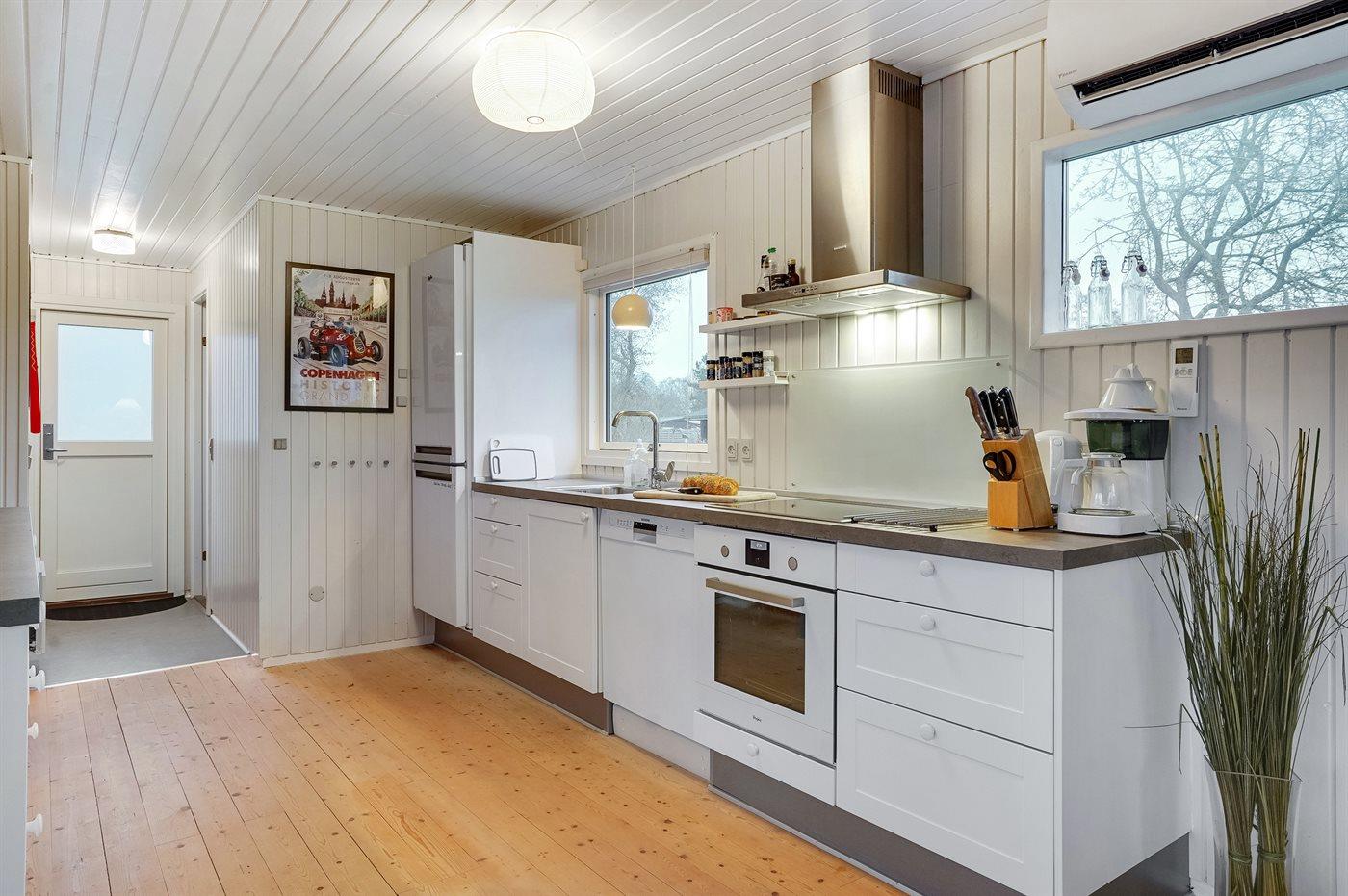 Køkkenet er udstyret med 1 køleskab. Der er 4 induktionskogeplader, varmluftovn, mikrobølgeovn samt opvaskemaskine.