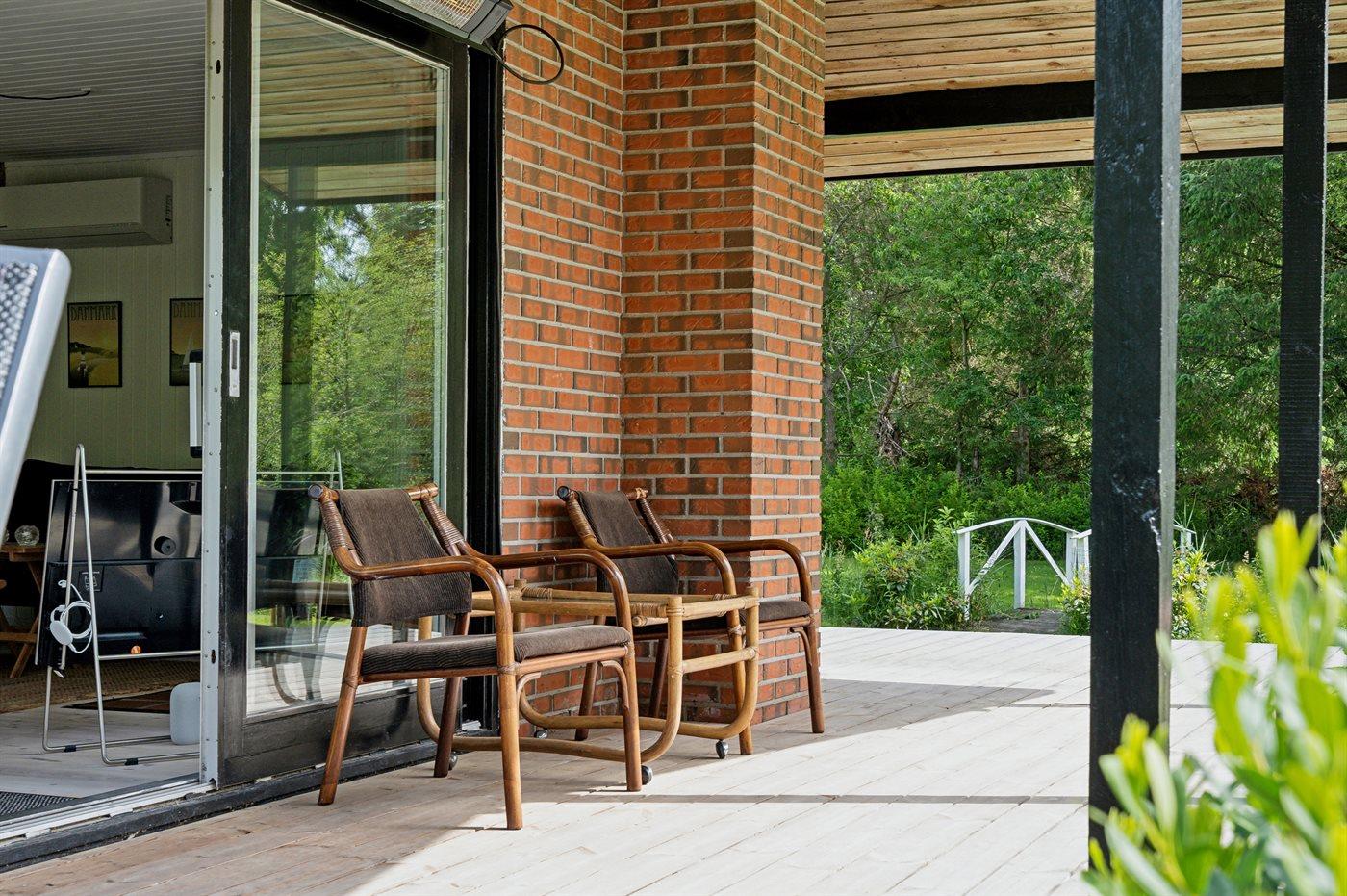 Ferieboligen er beliggende på en 2900 m² stor havegrund. Der er 600 m til havet. Nærmeste forretning er beliggende i en afstand af 600 m. Til ferieboligen hører åbent terrasseareal. Desuden er der overdækket terrasse. Udendørs bruser. Grill til rådighed. Parkering ved ferieboligen.