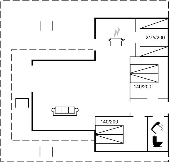 Der er i alt 3 soveværelser. Sovepladserne fordeler sig på: 4 sovepladser i dobbeltsenge. 2 sovepladser i enkeltsenge.