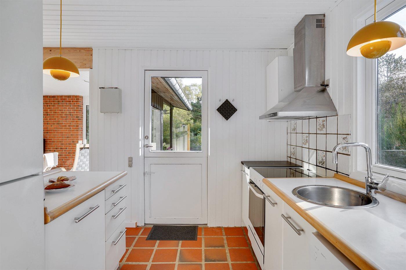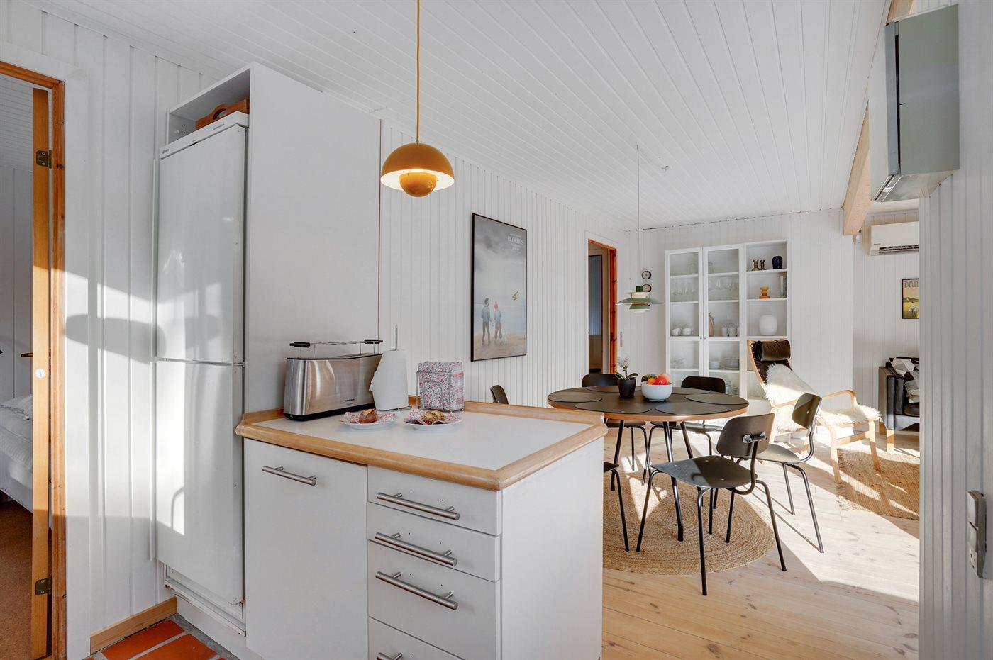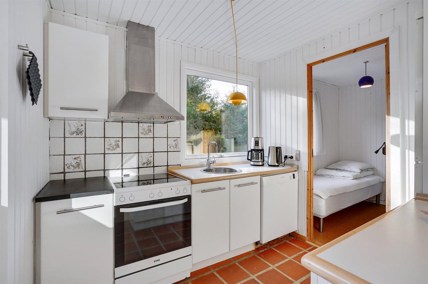 Køkkenet er udstyret med 1 køleskab. Der er 4 keramiske kogeplader, varmluftovn, mikrobølgeovn samt opvaskemaskine.