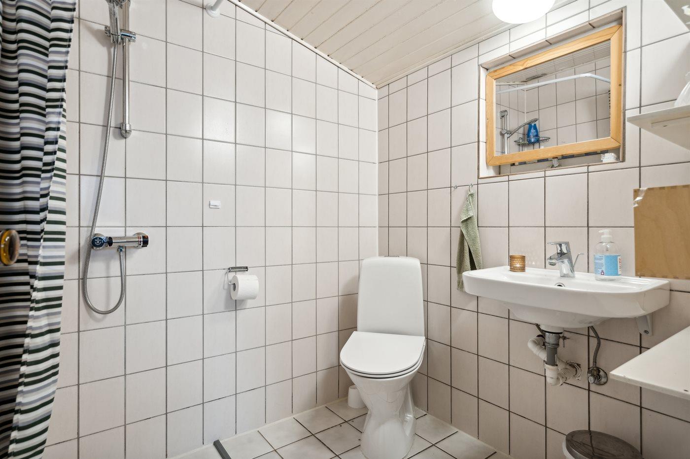 Der er 1 badeværelse med bruser og 1 toilet.
