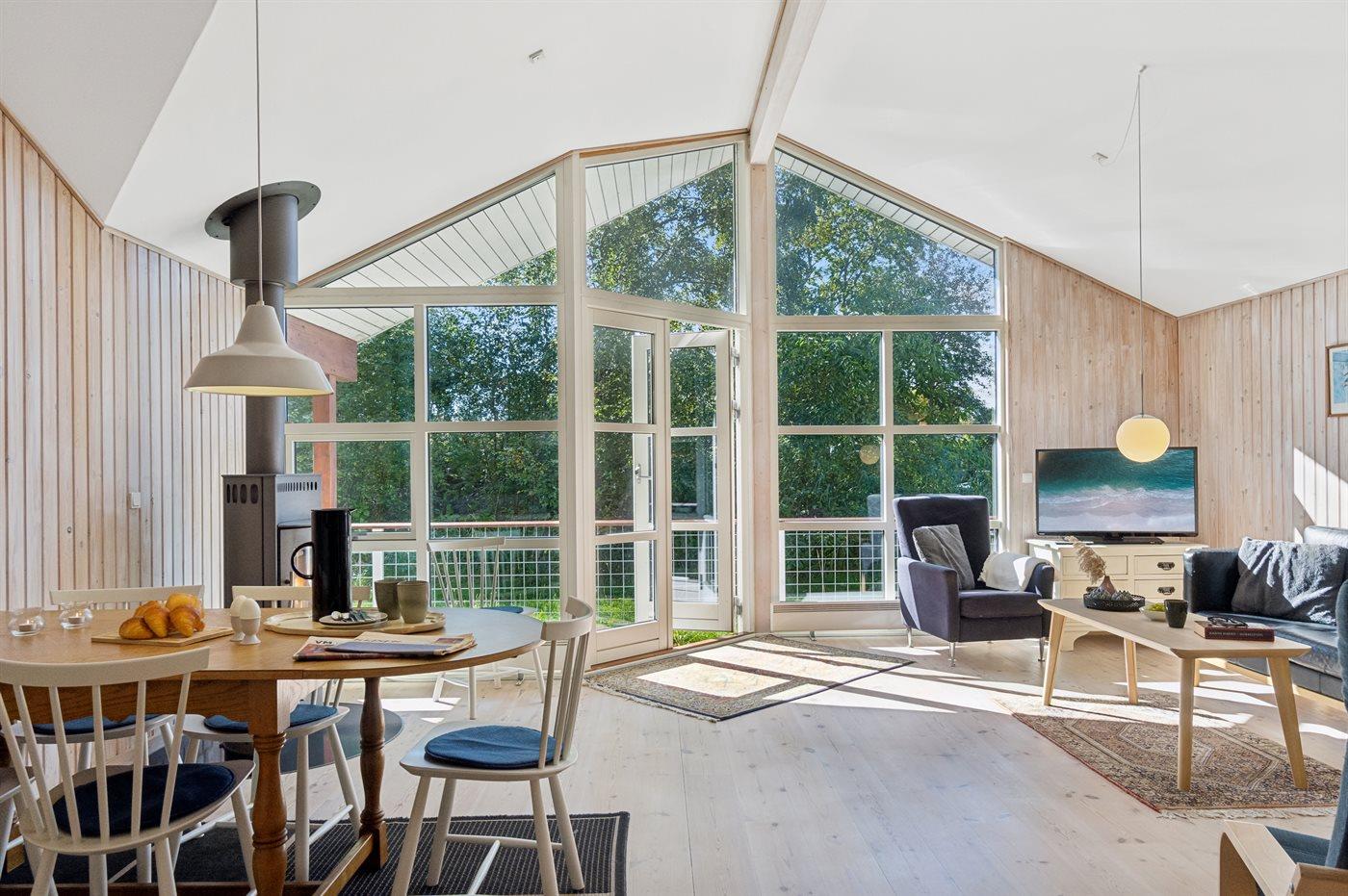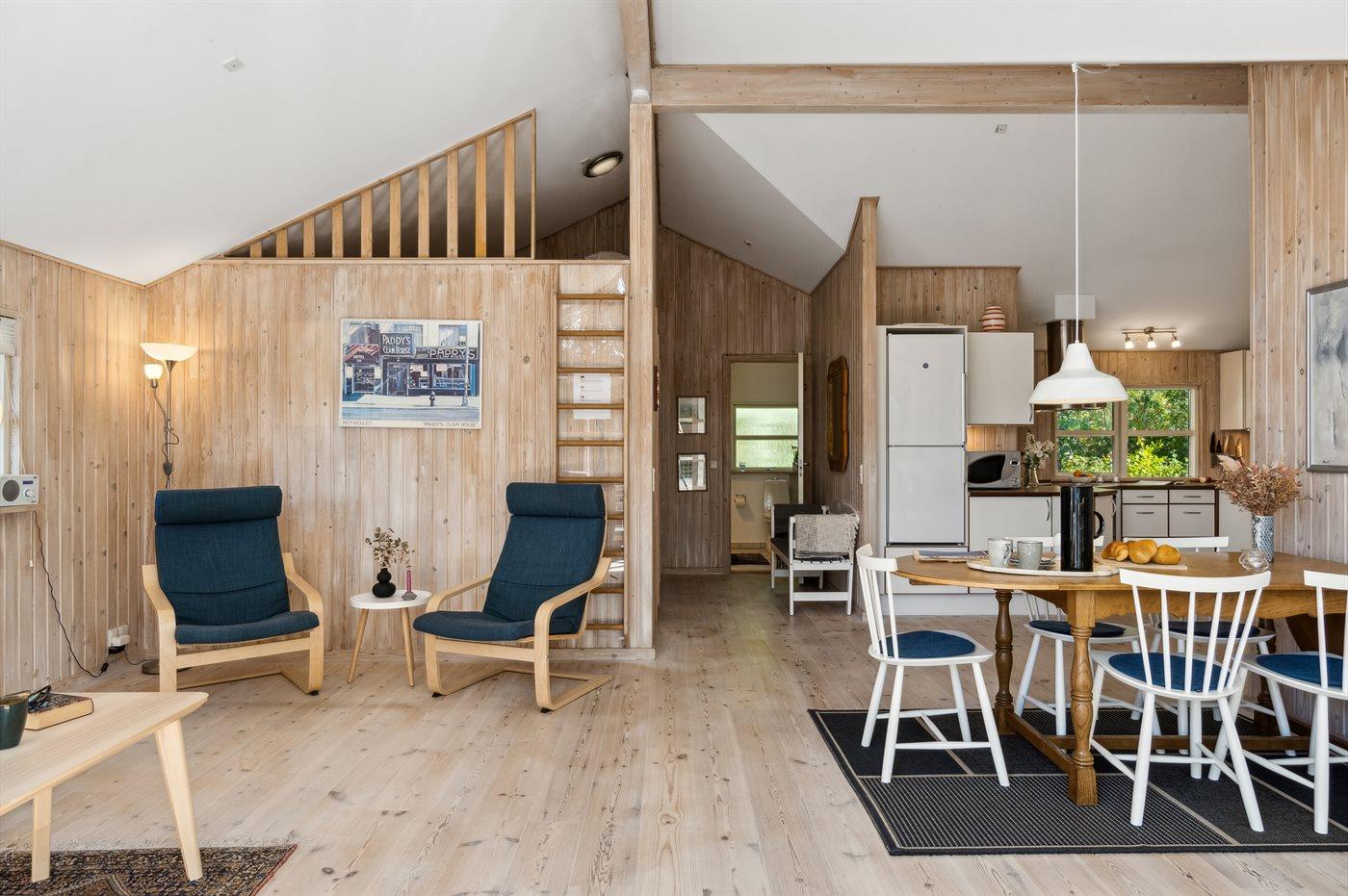 Sommerhuset fremstår i rigtig fin stand, lyst og moderne og med en god indretning. Husets hjerte er det store åbne køkken/alrum, som ligger i åben forbindelse med stuen, hvor hele familien kan samles og hygge sig. Huset har et boligareal på 94 m2, som gør huset rummeligt med god plads til f.eks. én familie med 2-3 børn eller ét par, som ønsker at nyde ferien i disse fine omgivelser. Det er også muligt at medbringe familiens firbenede ven – hvilket er oplagt idet grunden er indhegnet.