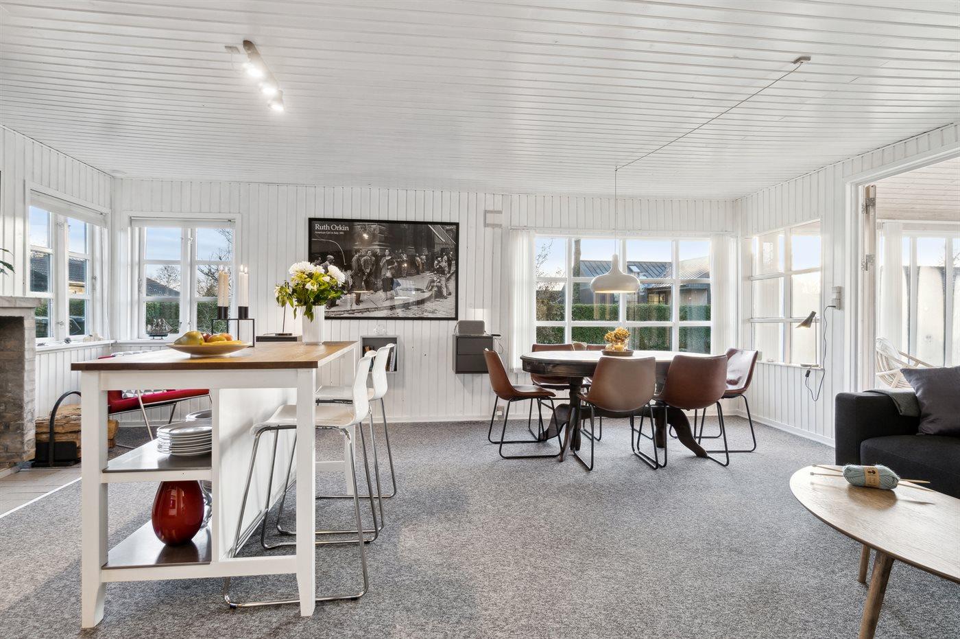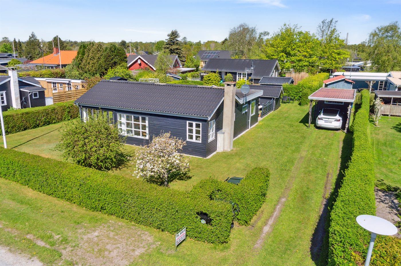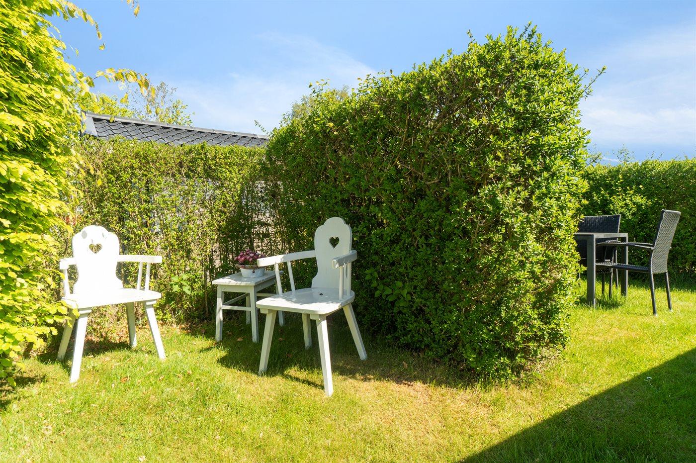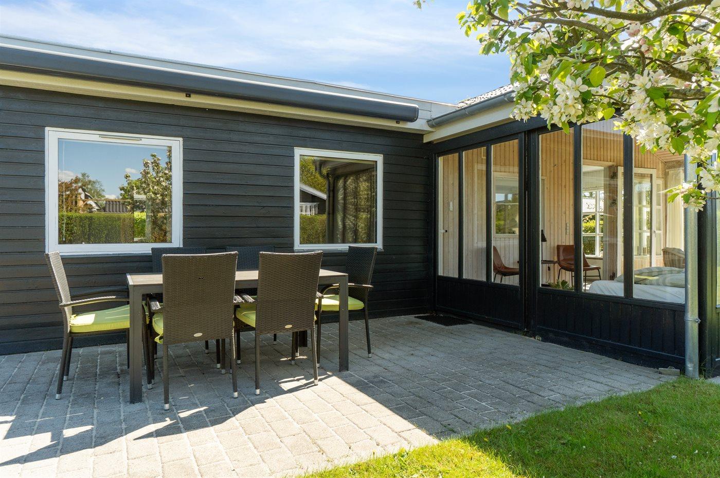 Sommerhuset har et skønt terrasseareal på flere sider af huset. Herudover er beliggenheden ganske ugeneret og med en have, som er oplagt til boldspil og leg for børn. Her er det helt oplagt at sidde og nyde roen med et glas vin eller en god kop kaffe.