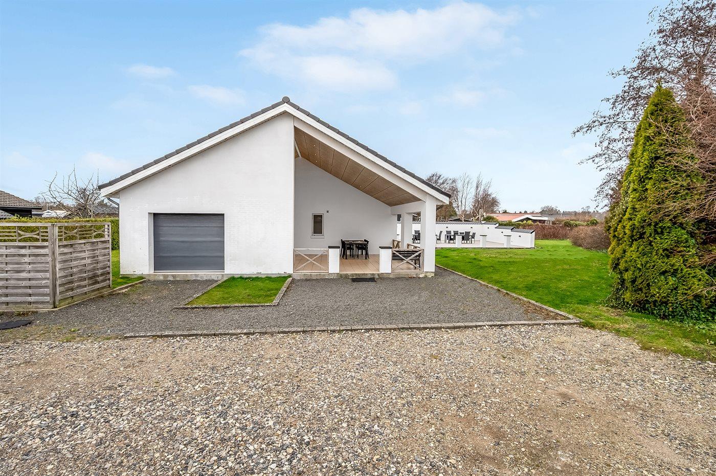 Ferieboligen er beliggende på en 961 m² stor havegrund. Der er 350 m til havet. Nærmeste forretning er beliggende i en afstand af 1500 m. Til ferieboligen hører åbent terrasseareal. Desuden er der overdækket terrasse. Parkering ved ferieboligen.