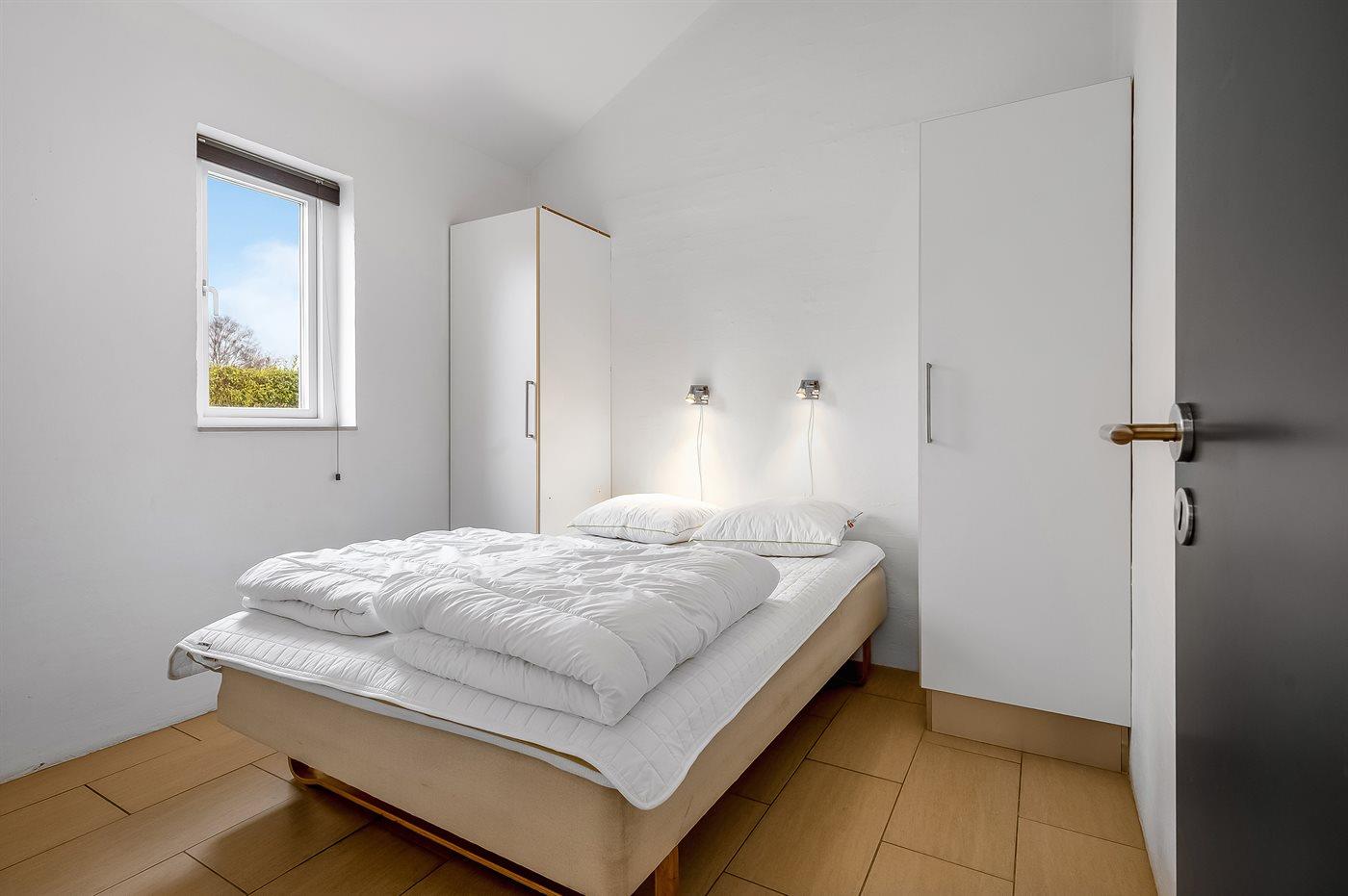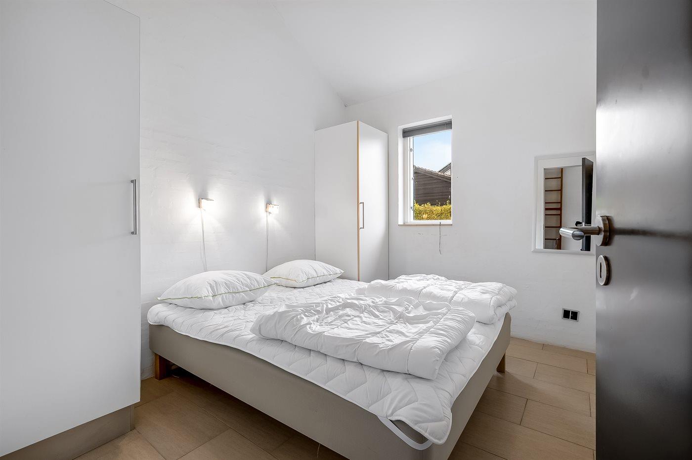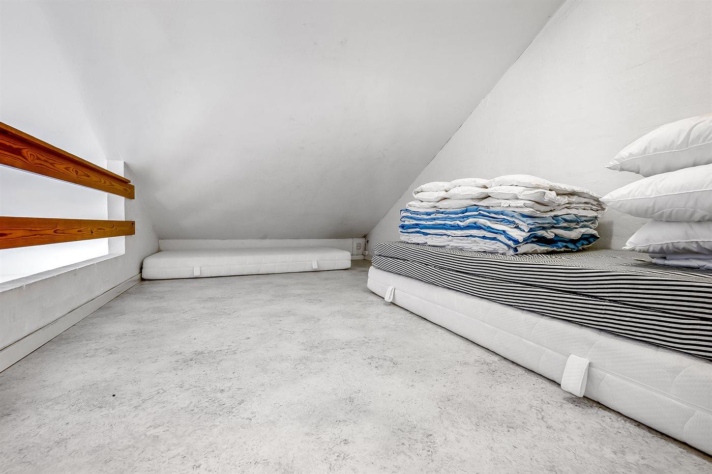 Der er i alt 3 soveværelser. Sovepladserne fordeler sig på: 6 sovepladser i dobbeltsenge. 4 sovepladser på madrasser. 4 af disse sovepladser befinder sig på husets hems.