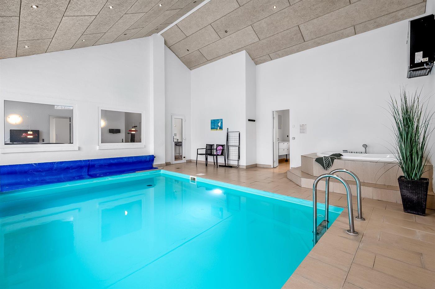 I den indendørs swimmingpool er der mulighed for leg og hyggeligt samvær. Swimmingpoolen måler op til 3,7 m i bredden, 5,35 m i længden og den er op til 1,2 m dyb. Vandet er mellem 24 og 28° C varmt.