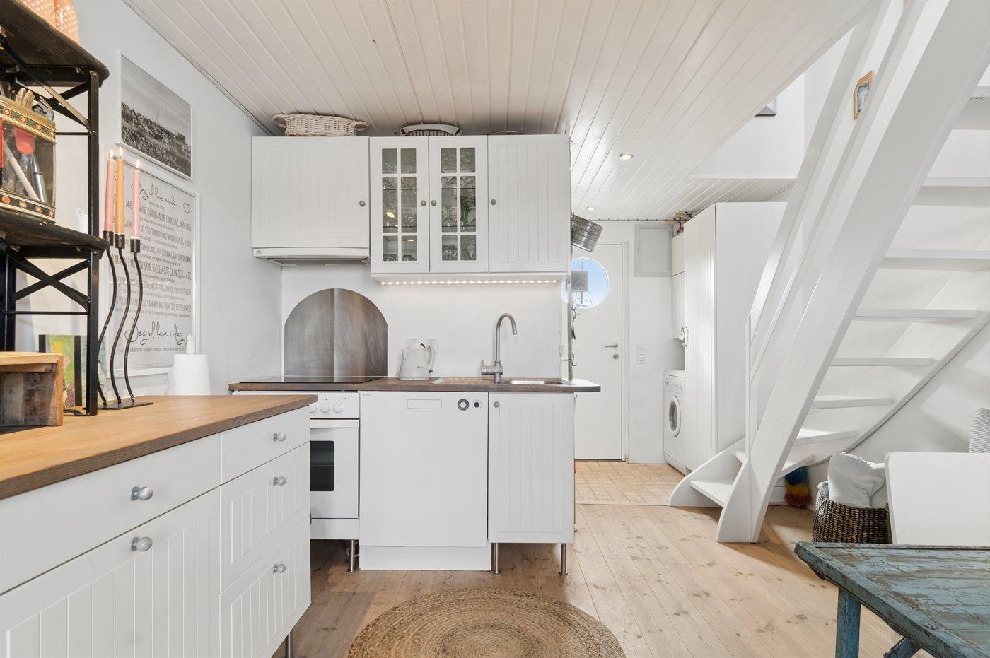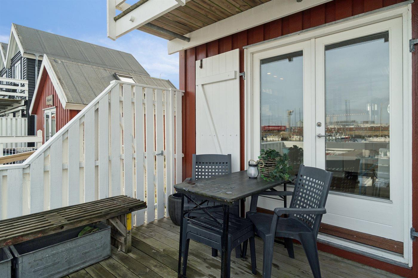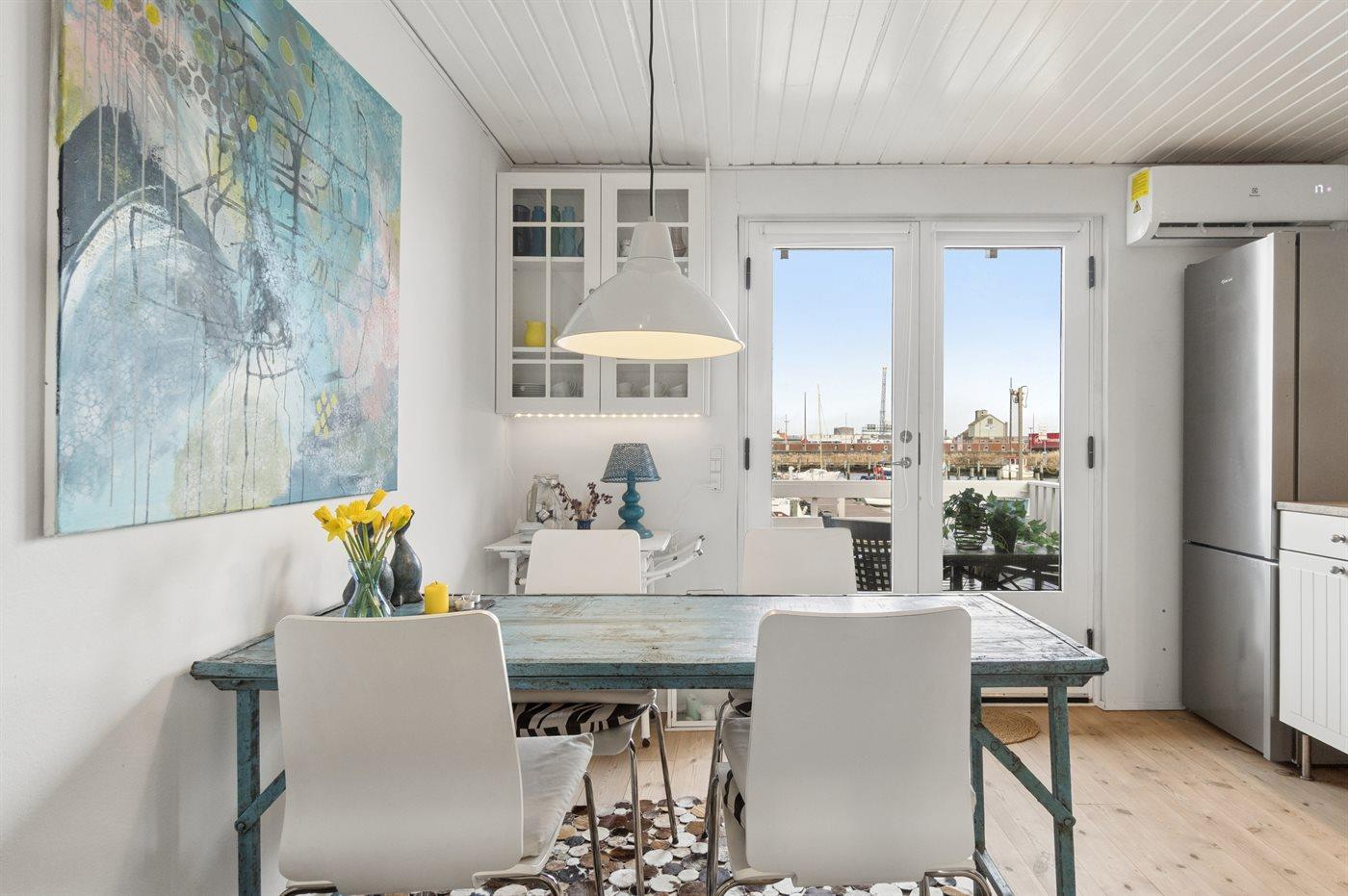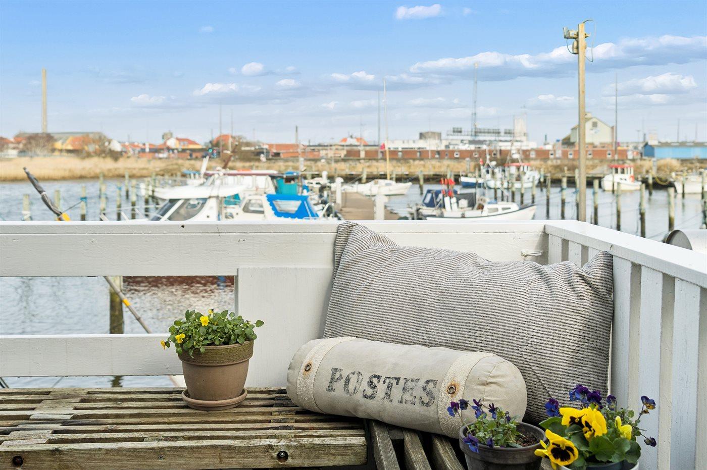 Åben terrasse med udsigt over lystbådehavnen. Hyggeligt og charmerende indrettet med et veludstyret køkken i stueplan, samt en varm og lys stue på 1. sal.