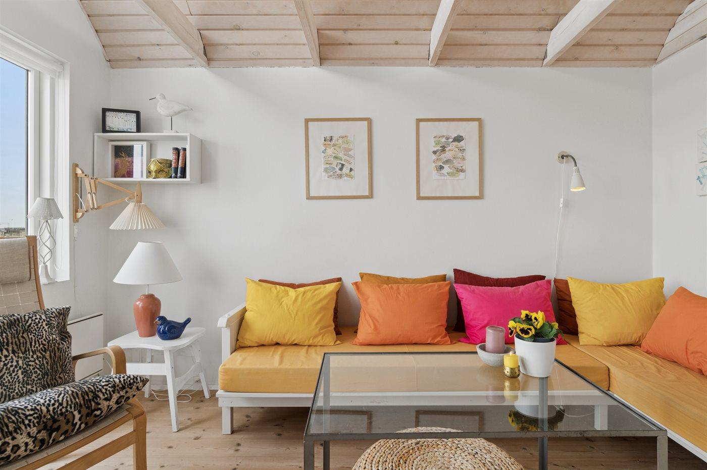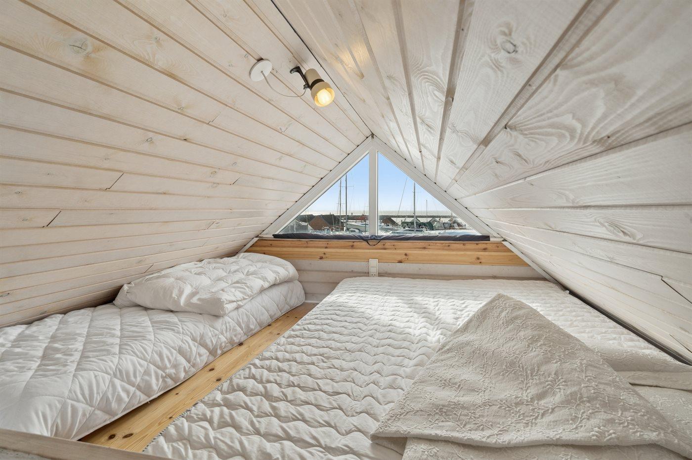 Der er i alt 1 soveværelse. Sovepladserne fordeler sig på: 2 sovepladser i dobbeltseng. 1 soveplads i sovesofa (enkelt). 2 sovepladser på madrasser. 2 af disse sovepladser befinder sig på husets hems og 1 i stuen.