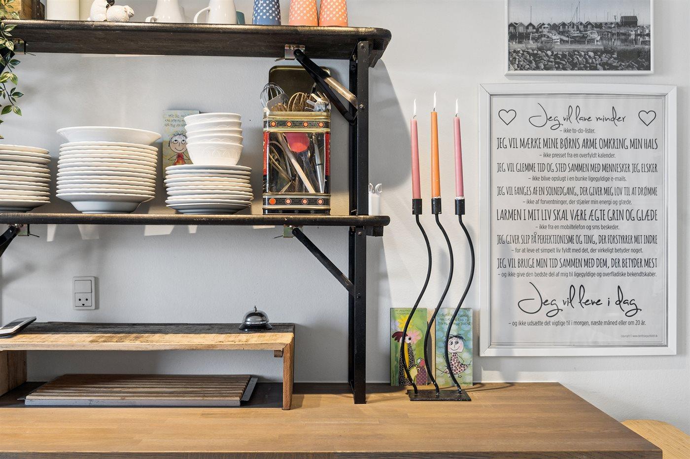 Køkkenet er udstyret med 1 køleskab. Der er 4 induktionskogeplader, varmluftovn, mikrobølgeovn samt opvaskemaskine.