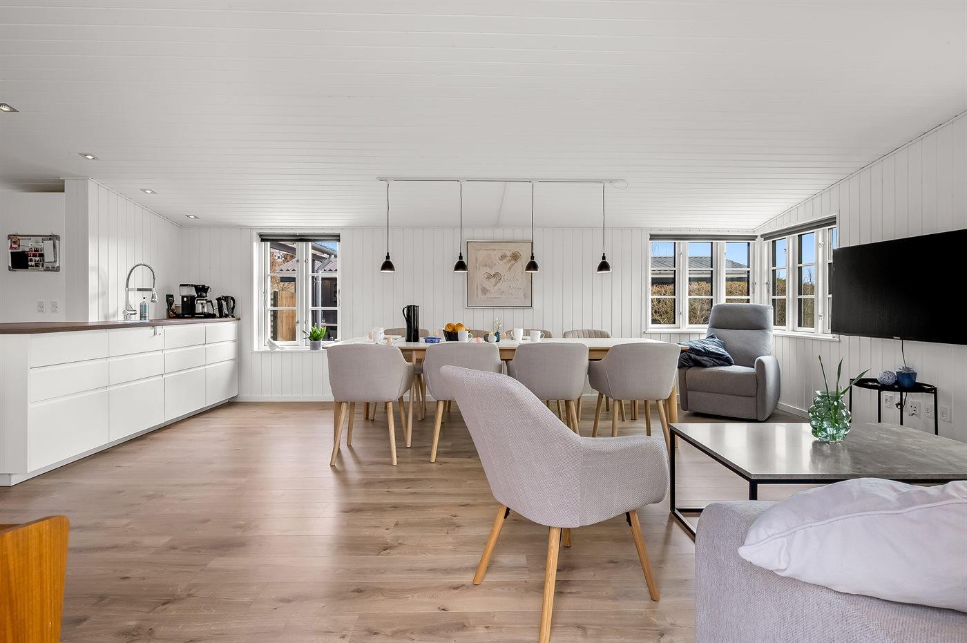 Sommerhuset fremstår i meget fin stand, lyst og moderne og med en god indretning. Husets hjerte er det store åbne køkken/alrum, der ligger i åben forbindelse med stuen, hvor hele familien kan samles og hygge sig, og hvorfra der er direkte adgang til de skønne terrasser. Huset har et boligareal på 105 m2, som gør huset rummeligt med god plads til f.eks. én familie med 2-3 børn eller sågar to mindre familier, som ønsker at nyde ferien i disse fine omgivelser. Det er endda tilladt at medbringe familiens firbenede ven. To af sovepladserne findes i et dejligt anneks, som er oplagt til f.eks. større børn.