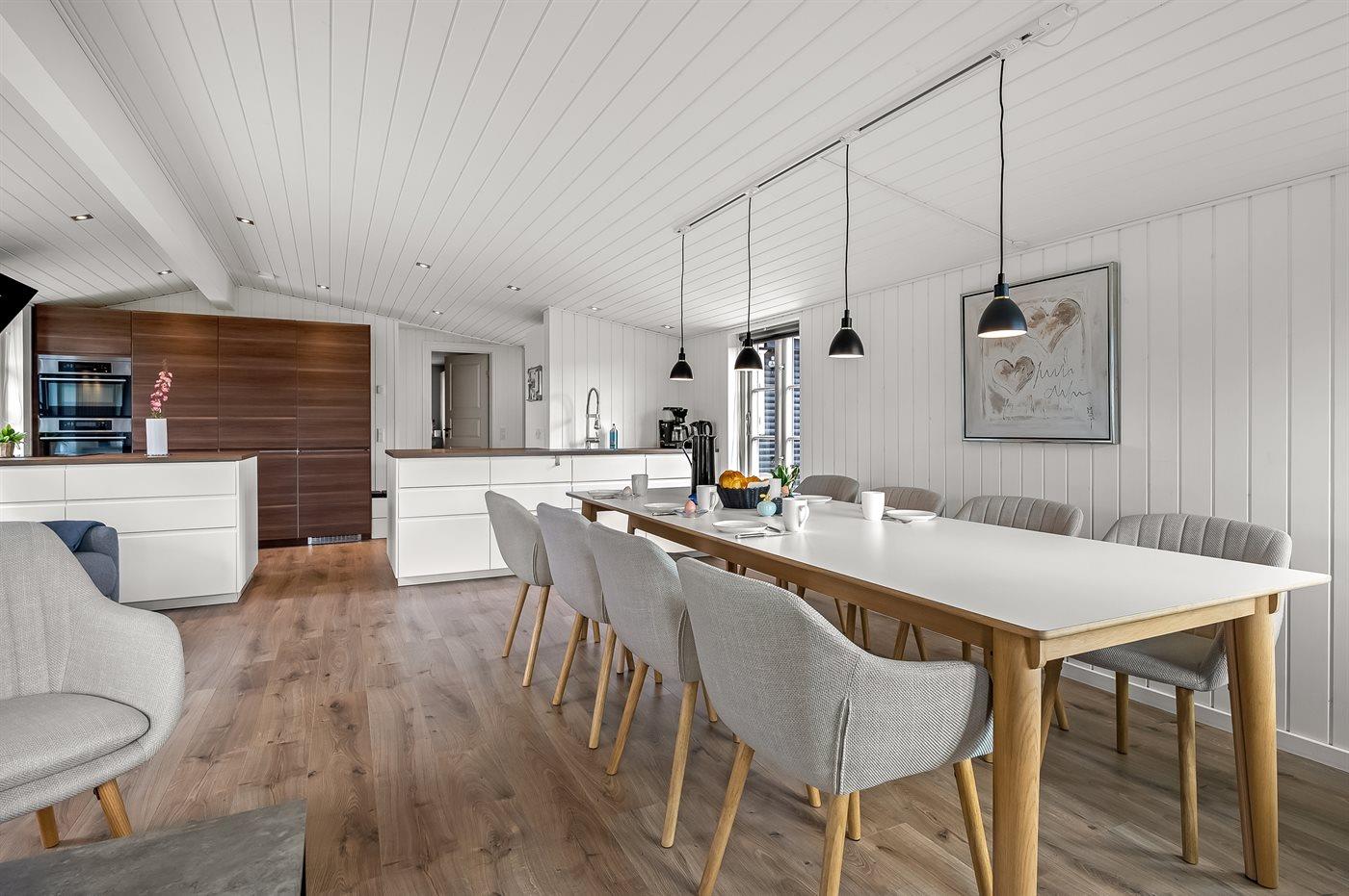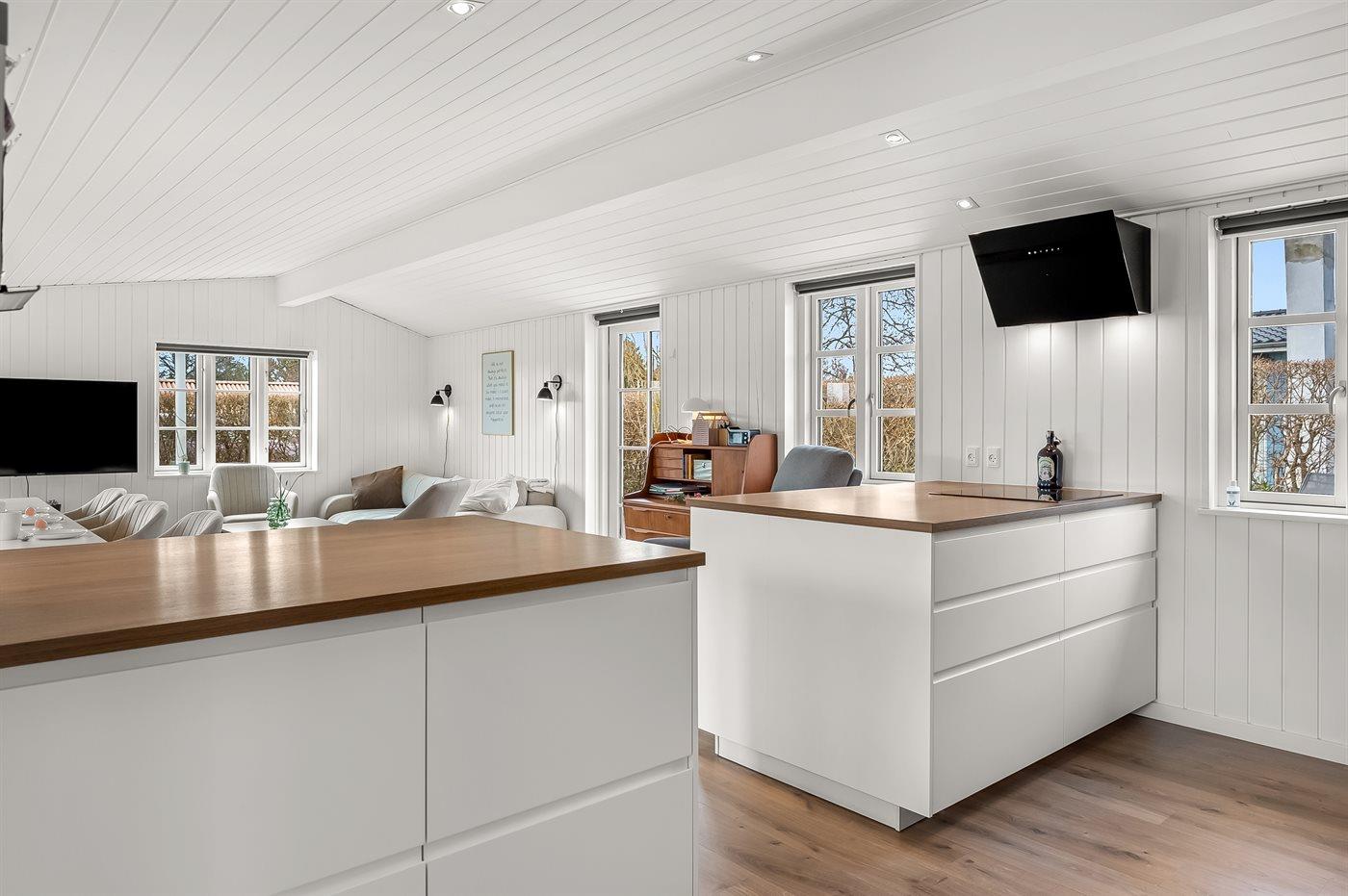 Køkkenet er udstyret med 2 køleskabe. Der er 4 induktionskogeplader, miniovn, varmluftovn, mikrobølgeovn samt opvaskemaskine.
