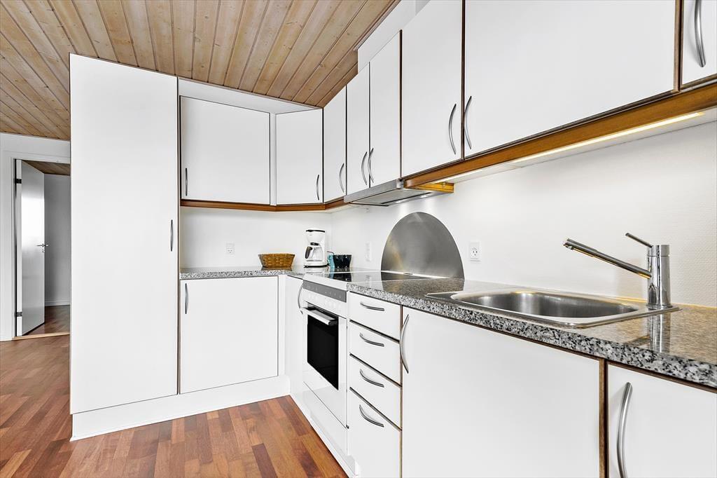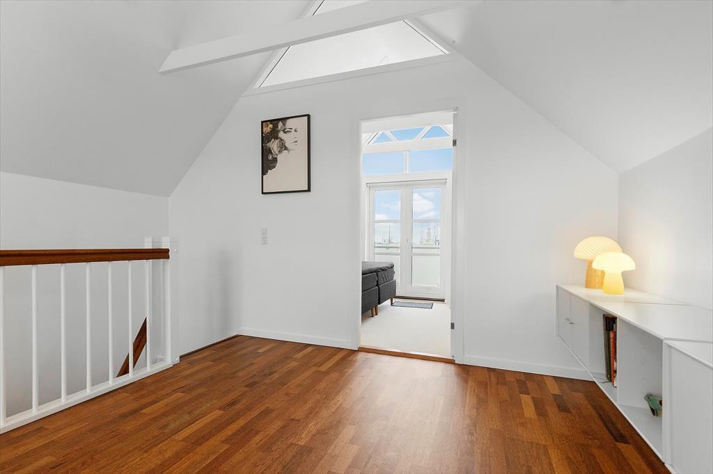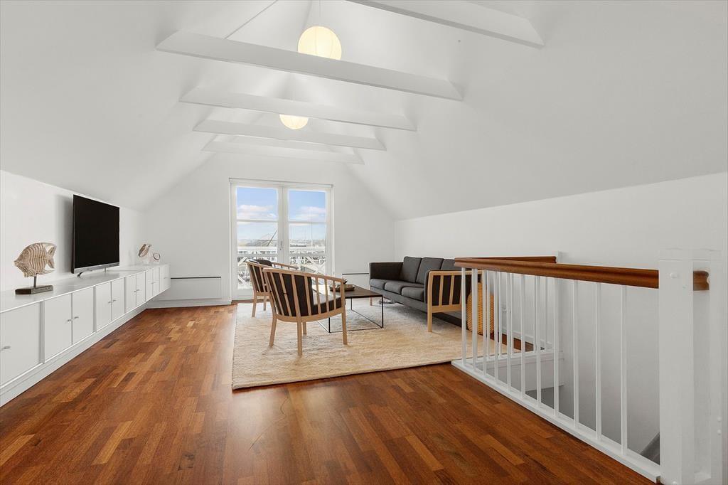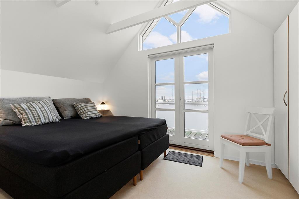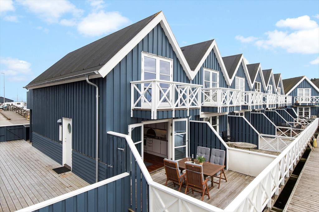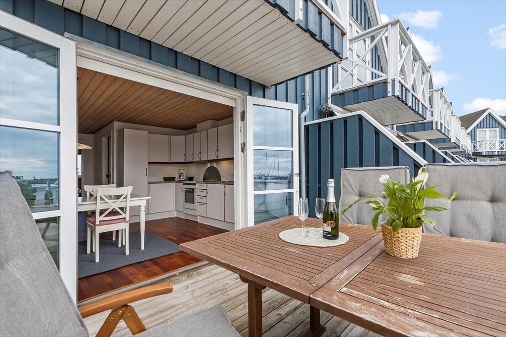 Udendørs: Start dagen med at se solen stå op fra balkonen ud for soveværelset ovenpå. Fra både terrasse og balkon mod sydvest, er der den dejligste udsigt over det maritime havneområde, skibene og havnebassinet. På både terrasse og balkon er der havemøbler og grillen står godt placeret på terrassen ud for køkkenet. Kom hjem fra dagens oplevelser, tænd grillen og nyd dagen gå på hæld til lyden af klaprende rigger og smuk solnedgang.