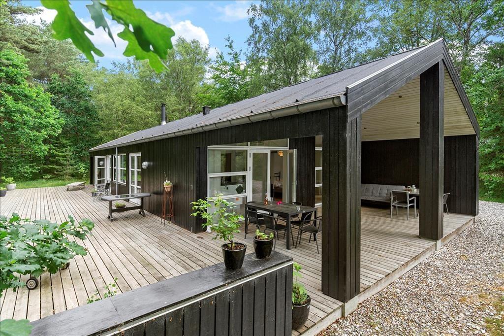 Natur, leg og afslapning under åben himmel. Når solen skinner, er husets store terrasse det perfekte samlingspunkt. Her kan I nyde lange morgenmåltider under den overdækkede del, grille på de lune aftener og lade børnene lege i sandkassen og haven, mens I slapper af i de komfortable havemøbler. Når mørket falder på, kan ny nyde lysene i træerne og et køligt glas mens dagens oplevelser tænkes igennem.