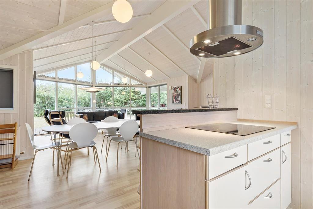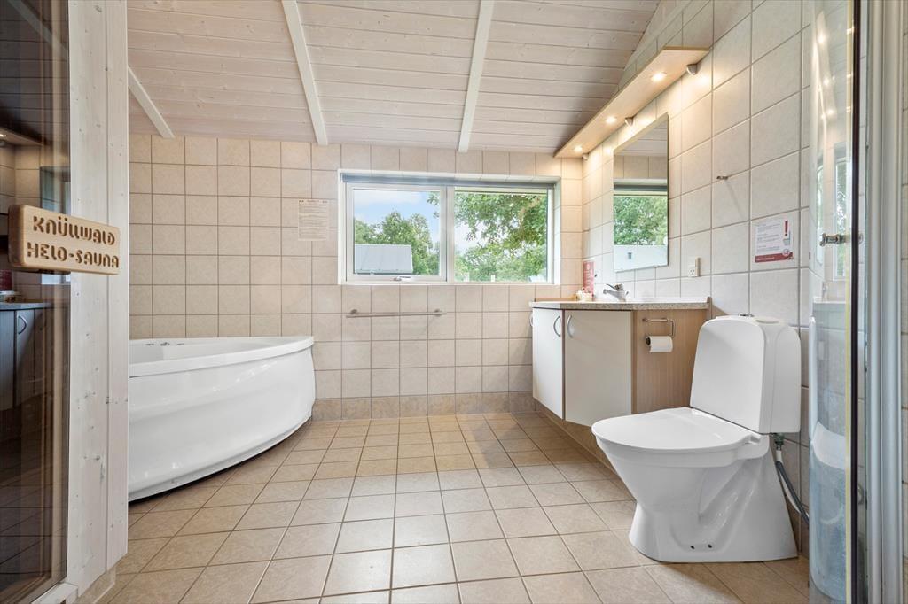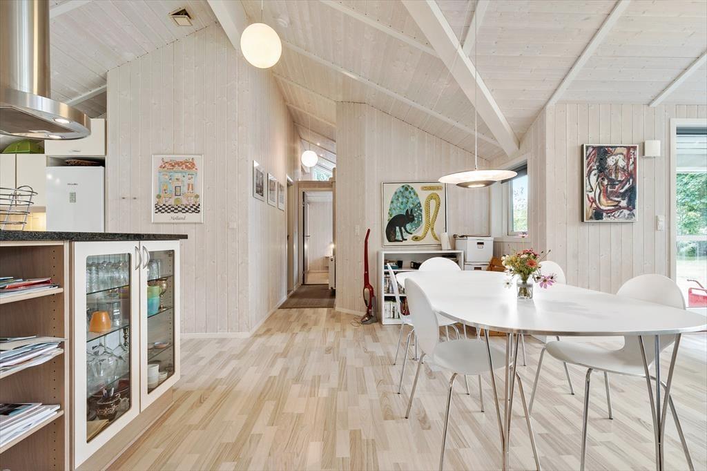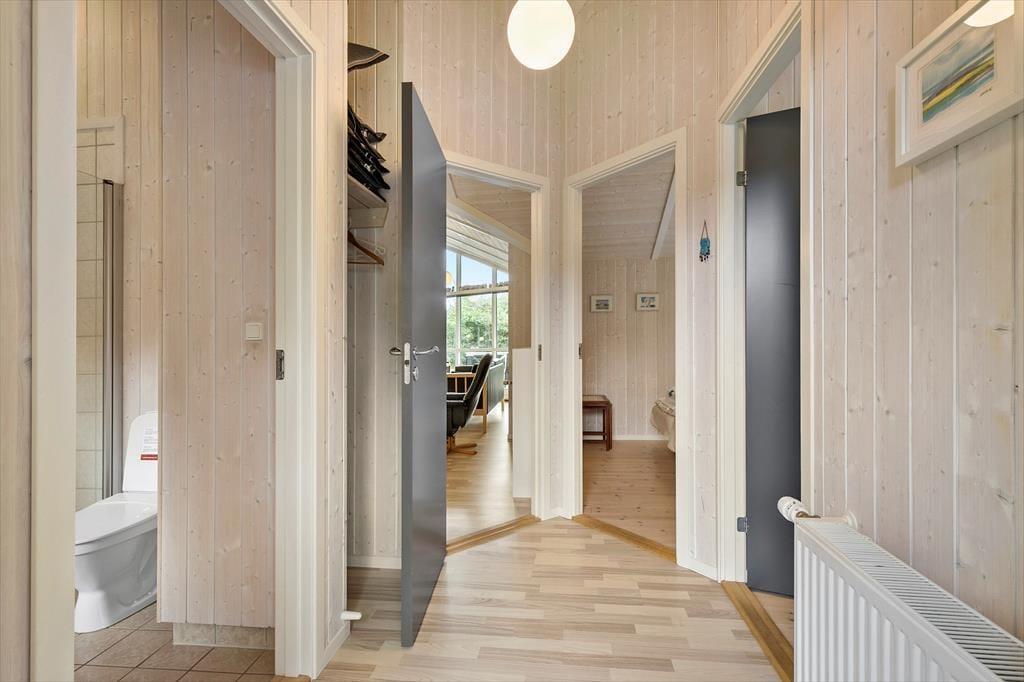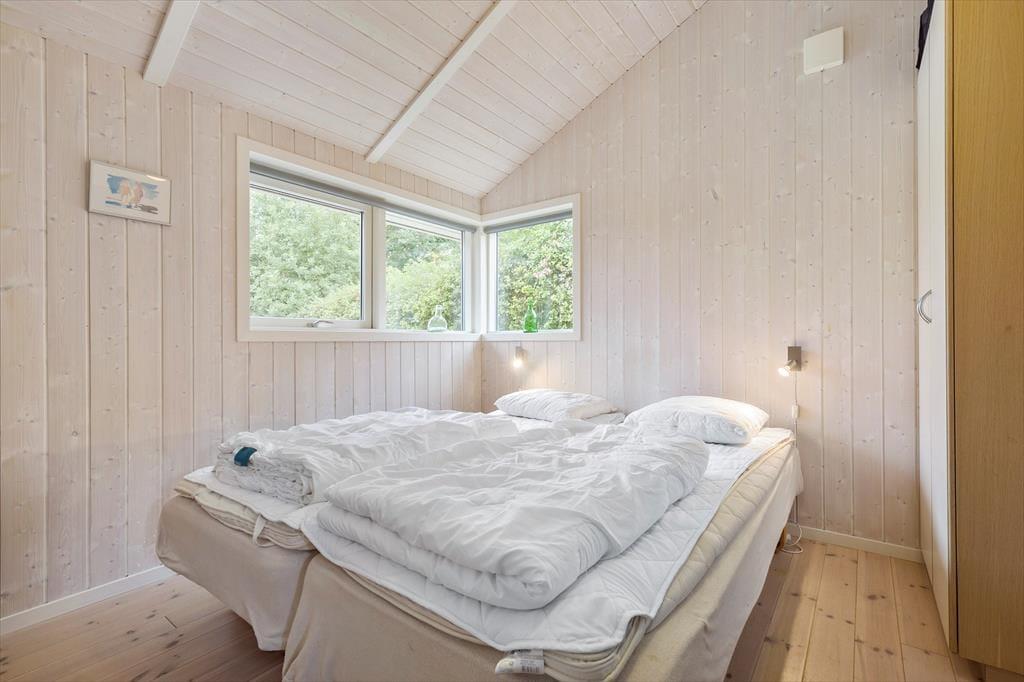 På en skøn og velplejet grund ligger dette dejlige og charmerende sommerhus og venter på at skabe rammen om jeres næste ferieeventyr. Indrettet med kærlighed og med øje for både komfort og funktionalitet. I husets lyse og indbydende stue strømmer solen ind gennem de store vinduer, og de bløde møbler inviterer til hyggelige stunder med spil, gode bøger eller måske en film efter en dag fuld af oplevelser. Stuen er åbent forbundet med det veludstyrede køkken, hvor I let kan samles om madlavning. Her finder I alt i hårde hvidevarer, så det praktiske bliver en leg. Når det er tid til at forkæle jer selv, står to flotte badeværelser klare. Det ene byder endda på et 2-personers spabad og adgang til en varm og afslappende sauna – perfekt efter en lang gåtur ved stranden eller i skoven. Sovepladserne fordeler sig i fire skønne værelser. To af værelserne er indrettet med komfortable dobbeltsenge, mens de to andre værelser har enkeltsenge. Her kan alle finde deres eget lille hjørne til ro og afslapning.