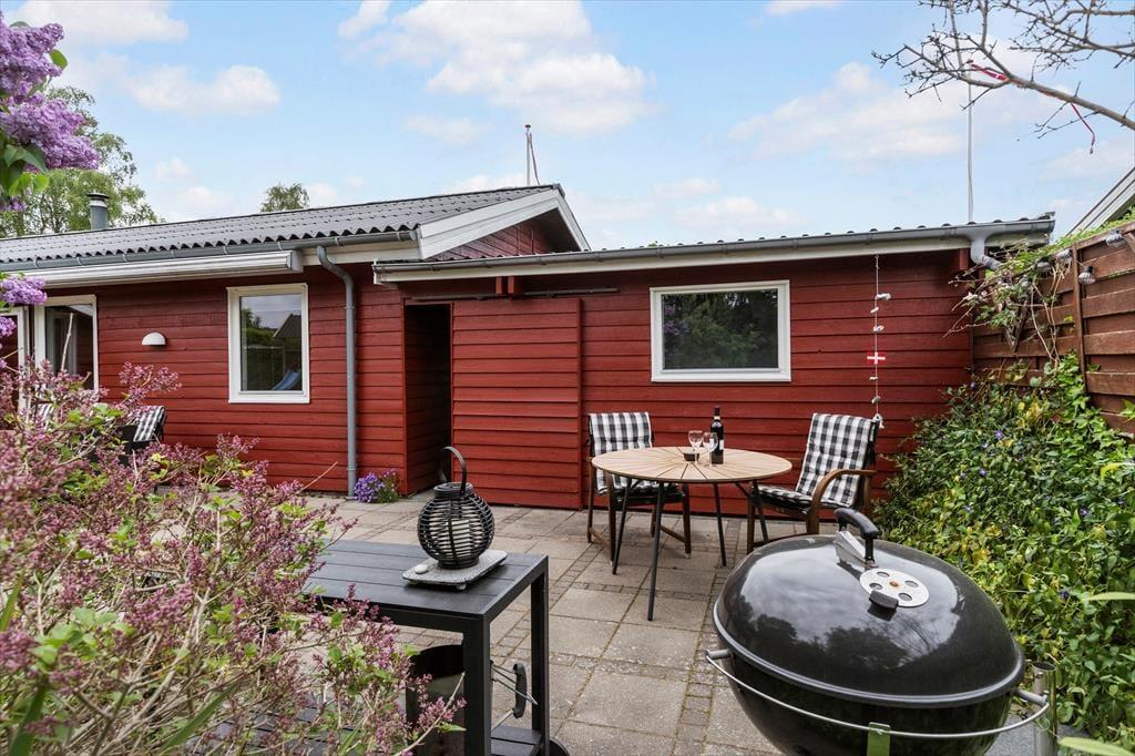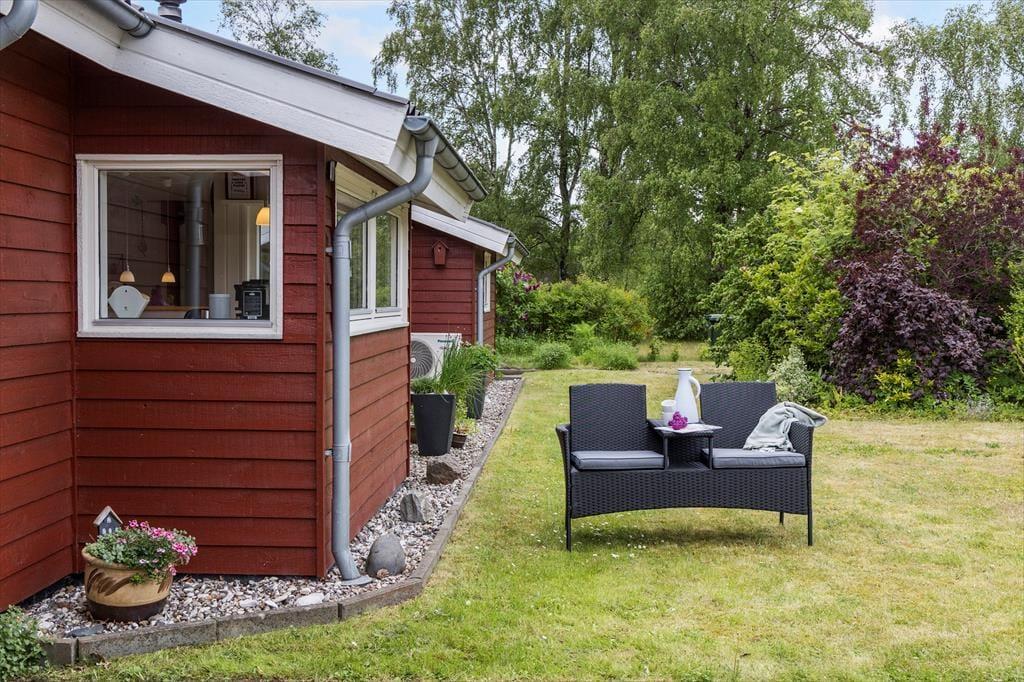 Sommerhuset ligger på en herlig naturgrund, der oser af hygge og ferieglæde. De mindste kan kaste sig over sjove eventyr i sandkassen, svinge sig højt mod himlen på gyngen eller suse ned ad rutsjebanen – her er garanteret grin og glade dage. Imens kan de voksne læne sig tilbage i de bløde havemøbler på den solbeskinnede sydvendte terrasse, nyde en god bog eller bare lukke øjnene og mærke feriefreden sænke sig. Når maverne begynder at rumle, er grillen klar til at trylle lækre måltider frem, som kan nydes i det fri – med fuglefløjt og feriedufte som perfekte ledsagere.