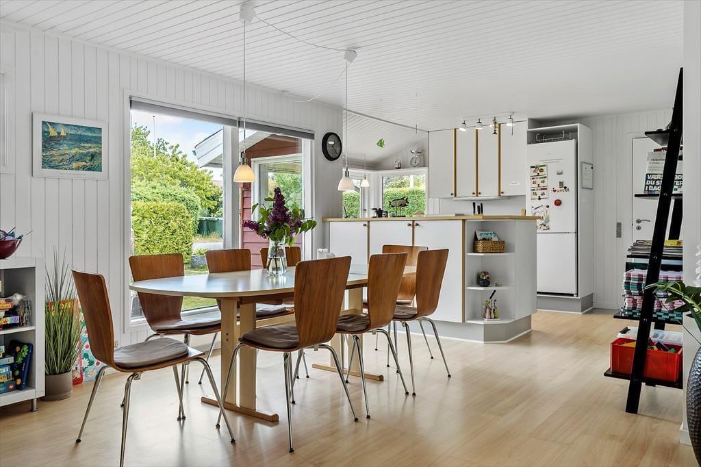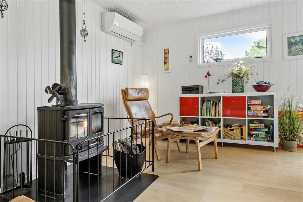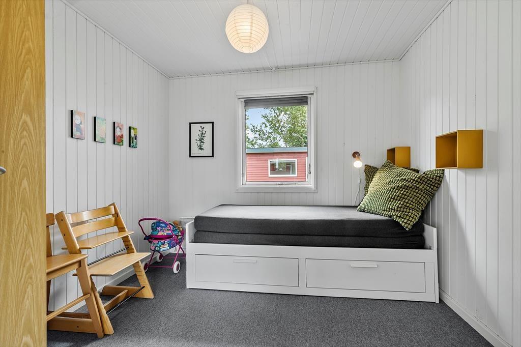 Nær en af Jyllands allerbedste badestrande finder du dette hyggelige og velindrettede sommerhus – et perfekt sted til en afslappende ferie med dem, du holder af. Huset byder på en lys og indbydende stue, hvor komfortable møbler, en knitrende brændeovn og en varmepumpe skaber den helt rette atmosfære. Her kan du læne dig tilbage med en god bog eller samle familien til hyggelige stunder. I åben forbindelse med stuen ligger det flotte køkken, der er udstyret med alle de faciliteter, du har brug for – herunder en opvaskemaskine, der gør livet lidt lettere. Huset har to badeværelser, og det ene er ekstra luksuriøst med et badekar, der indbyder til afslapning efter en dag fuld af aktiviteter. Når det er tid til at finde ro, venter fire gode værelser på dig. Tre af værelserne har dobbeltsenge, mens det fjerde byder på en god, dobbelt sovesofa – ideel til overnattende gæster eller teenagere, der vil have deres eget hjørne. De mindste feriegæster er heller ikke glemt, for huset er udstyret med barneseng og høj stol. Og til de lidt større børn – og barnlige sjæle – er der et renoveret haveskur med både bordfodbold og dart, hvor familien kan dyste om titlen som feriechampion.