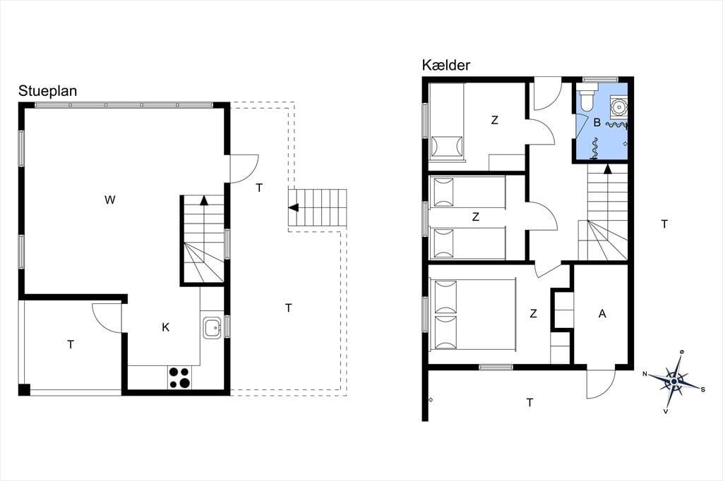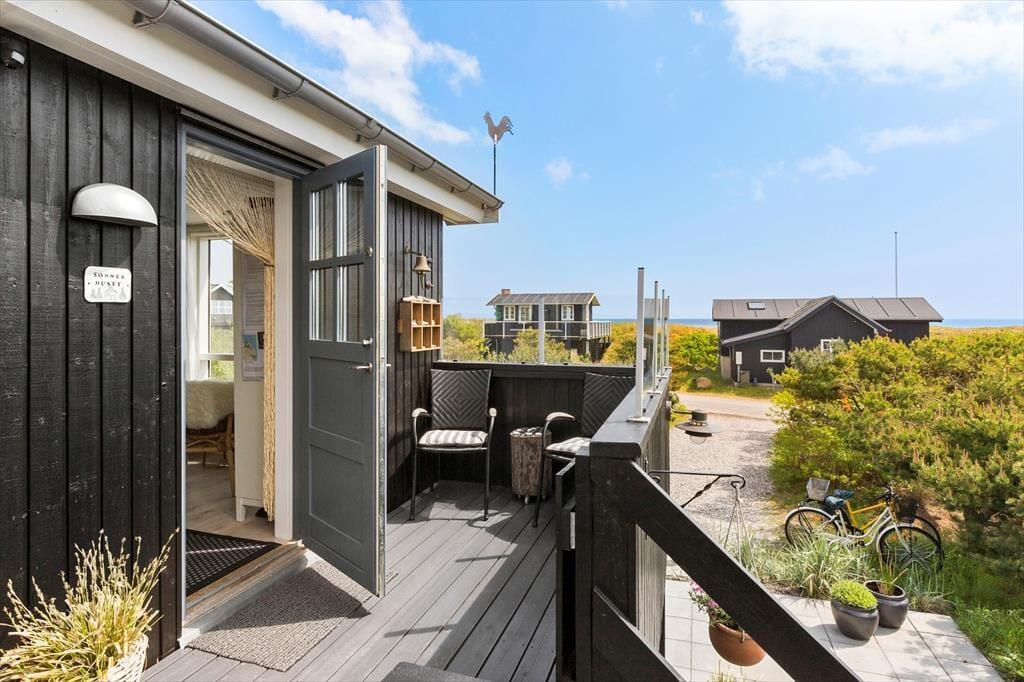 Huset emmer af autentisk sommerhusstemning og fordeler sig over to etager. På overetagen finder du en åben og lys kombination af stue og køkken, hvor havudsigten følger med uanset hvor, du er. Herfra er der direkte adgang til to træterrasser, der giver dig valget mellem morgensol eller solnedgang. Den lille terrasse er perfekt til en hyggelig middag under aftensolen, mens den store terrasse byder på morgenkaffe, solbadning og udendørs måltider, mens du nyder udsigten til klitterne og havet.