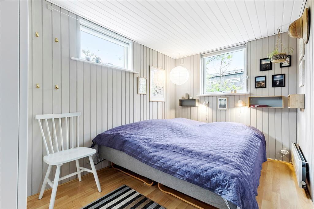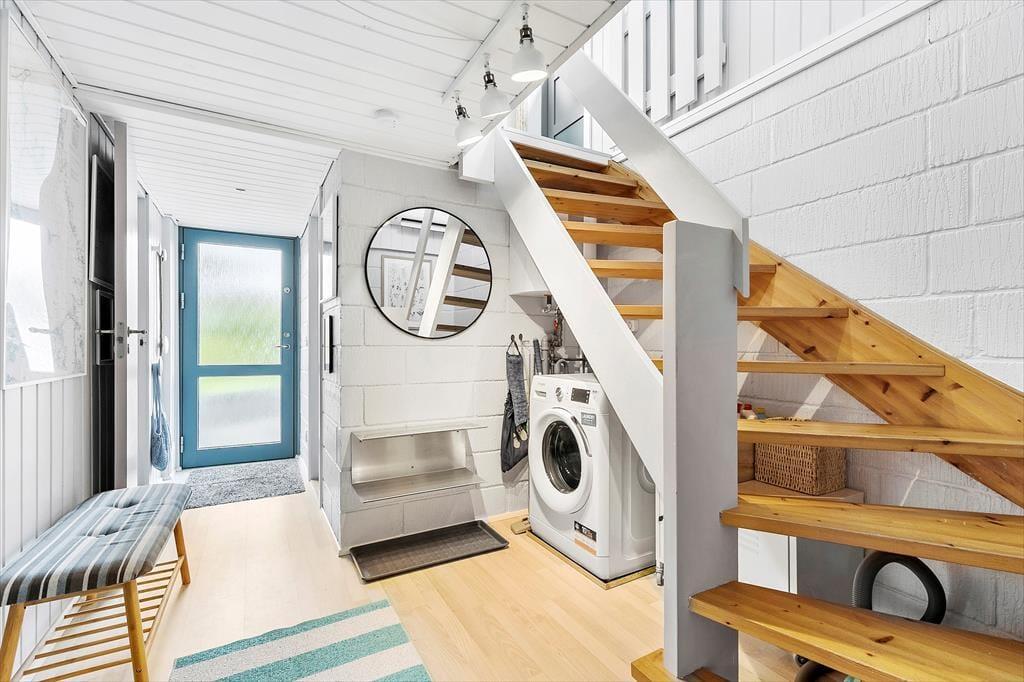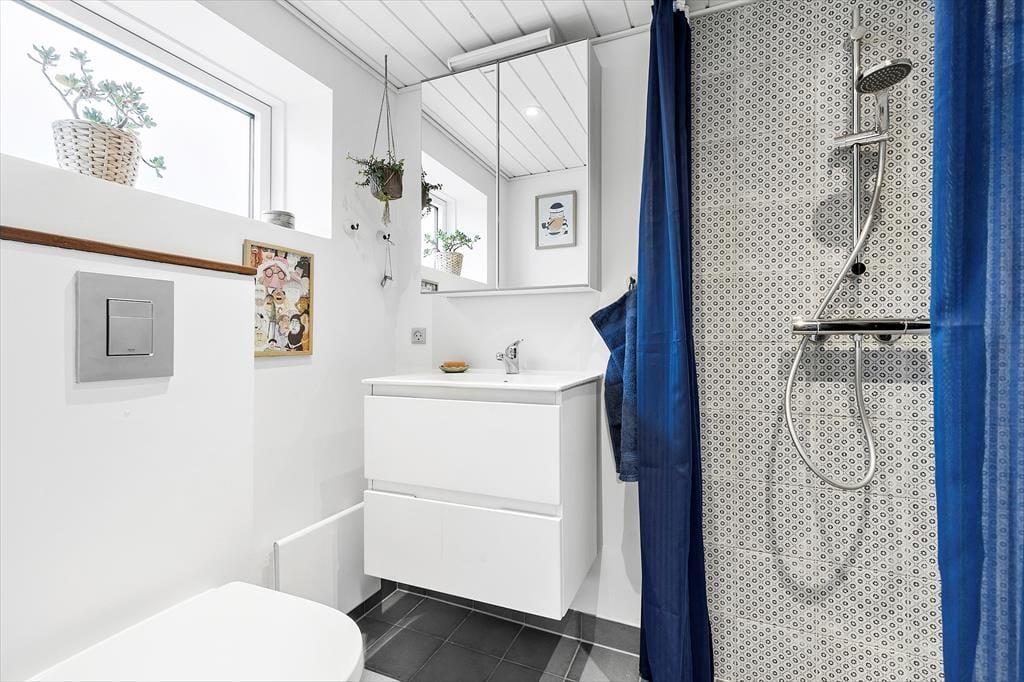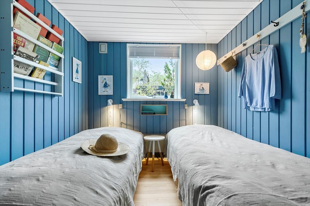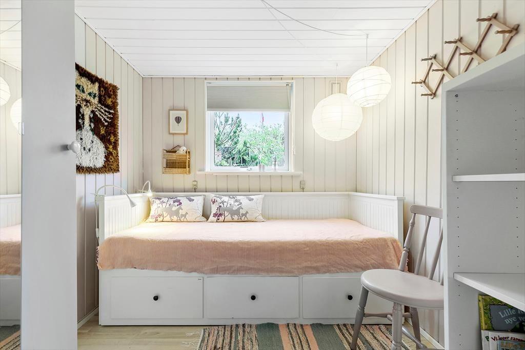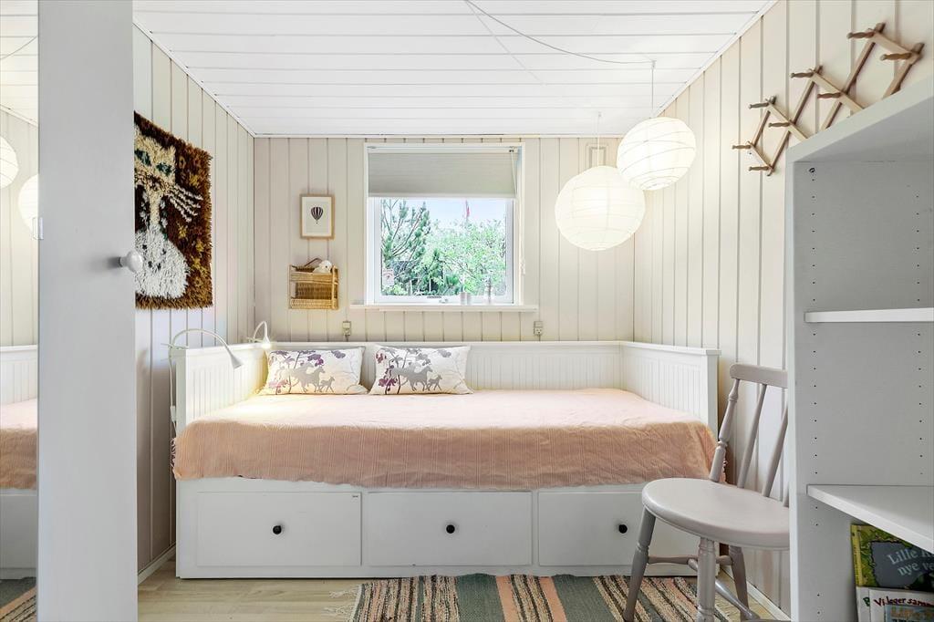 Underetagen er indrettet med tre hyggelige soveværelser. Ét med en dobbeltseng, èt med to enkeltsenge, der kan skubbes sammen, og ét med en dobbelt sovesofa. Her er også det fineste badeværelse og en hyggelig entré med vaskemaskine og trappen, der fører op til de skønne opholdsrum på overetagen.