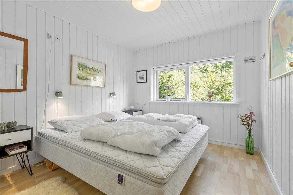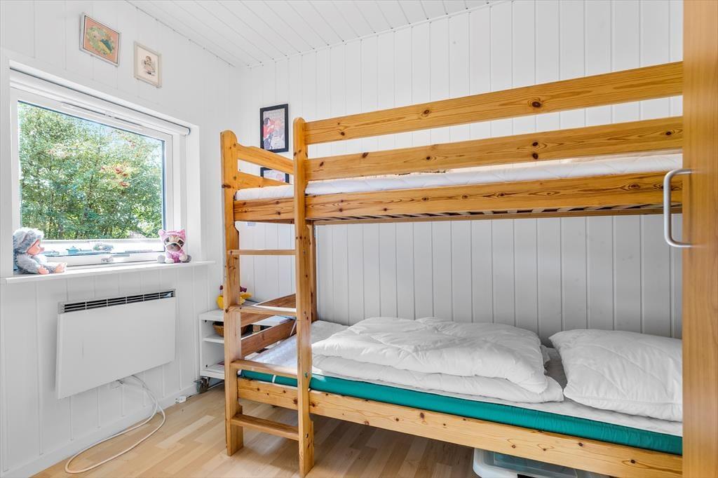 Kun 200 meter fra sommerhuset venter badestranden, så en frisk dukkert kan nemt blive en del af dagen – morgen, middag eller aften. Og der er kun 100 meter til fælles legeplads, hvor børnene kan boltrer sig.