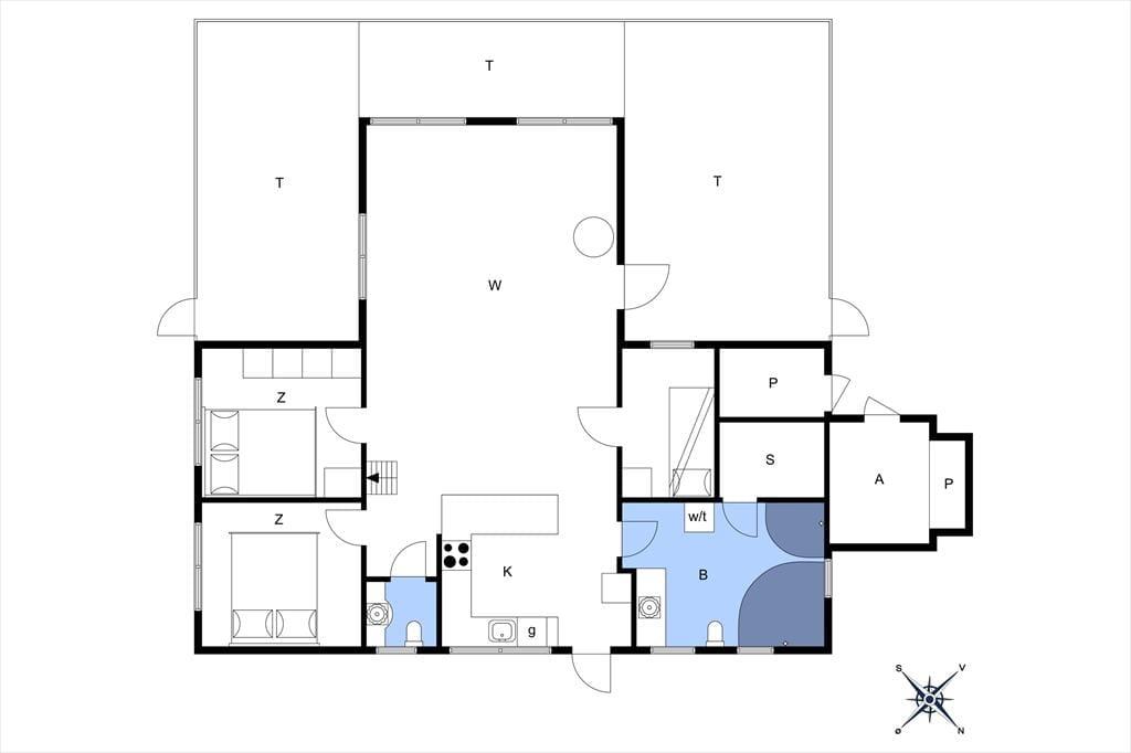 I husets hjerte er det store alrum, hvor køkken, spiseplads og stue flyder naturligt sammen. Her kan du snitte grøntsager til frokosten, mens nogen dækker bord, og resten af familien slapper af i sofaen foran brændeovnen eller ser en film. Fra alrummet er der direkte udgang til den lukkede terrasse, som vender mod øst, syd og vest.