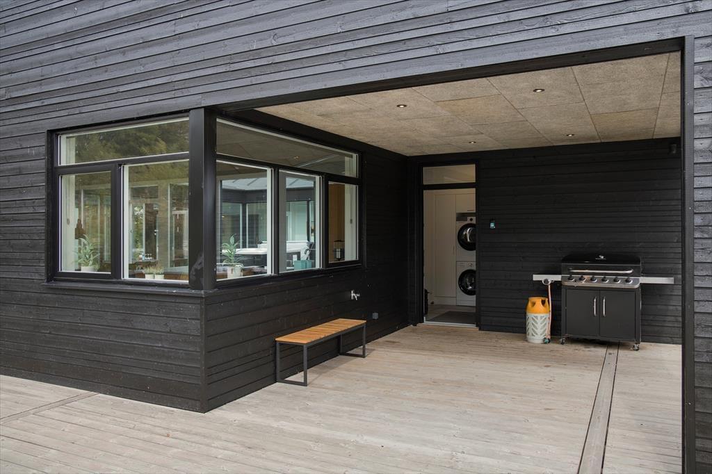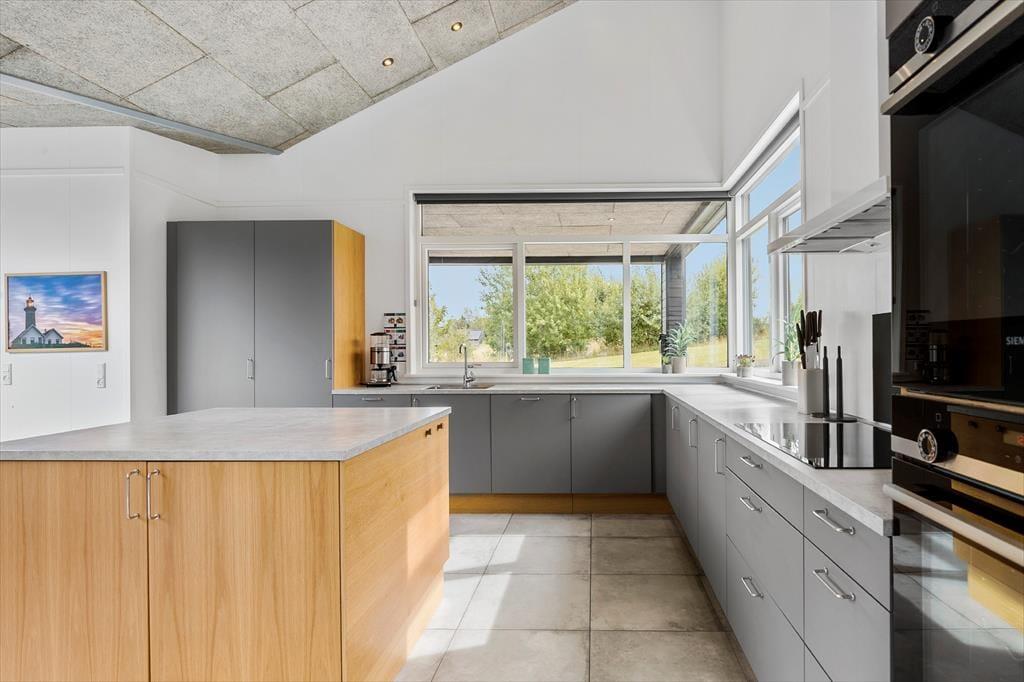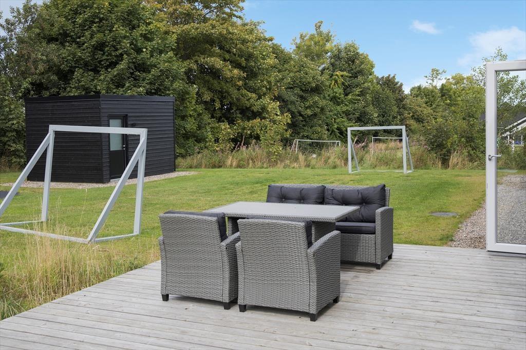 Grunden er stor, så der er god plads til både rundbold, fodbold og fangeleg. Rundt om sommerhuset venter flere indbydende terrasser, hvor du kan slappe af med en dejlig kop kaffe, hvis du da ikke skal med på trampolinen og lave hoppende energiudladninger. Du kan også tænde gasgrillen og nyde duften af lokale råvarer, der bliver til en dejlig feriemad.