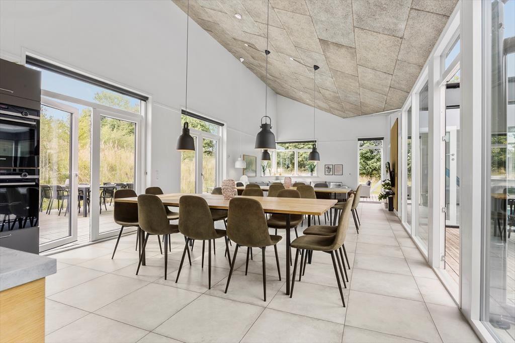 Husets hjerte er det store, lyse køkken-alrum med hyggelige spisepladser og stue, hvor familien samles til måltider, brætspil eller en rolig stund i sofaen. Fra det meste af huset kan du nyde den gode tryghed ved at have børnene lige i nærheden, mens de hviner, leger og plasker i poolen.