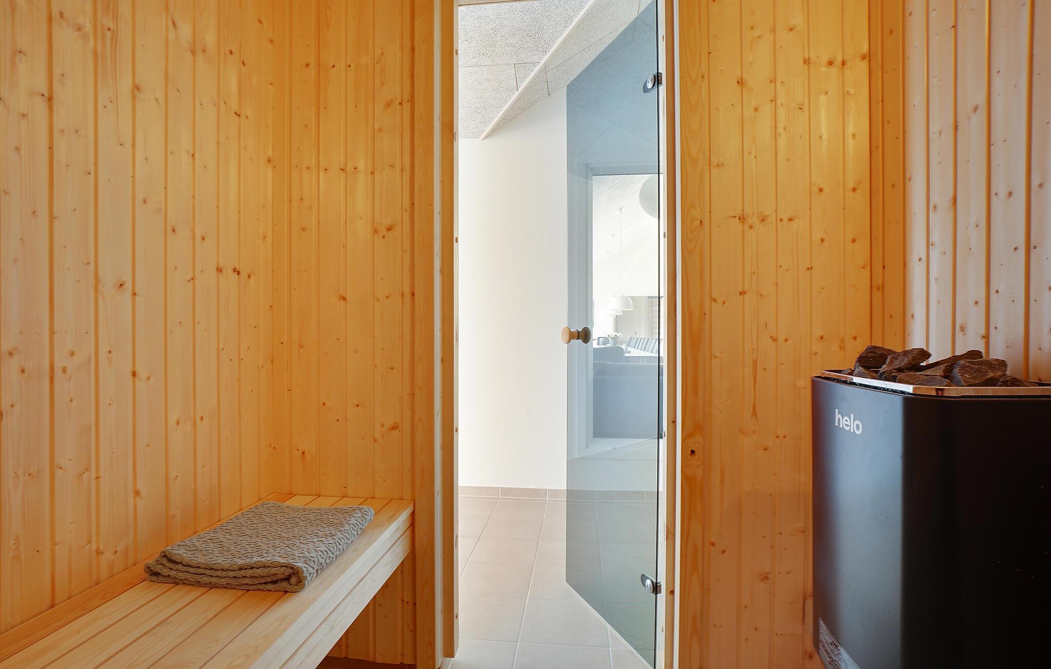 Vandhunde og badenymfer er i paradis i dette sommerhus. Her er nemlig en stor indendørs swimmingpool, hvor der kan plaskes og bades dagen lang. Poolen har romersk trappe, vandrutsjebane og modstrømsanlæg. I poolrummet finder I også et lækkert spabad og en sauna.