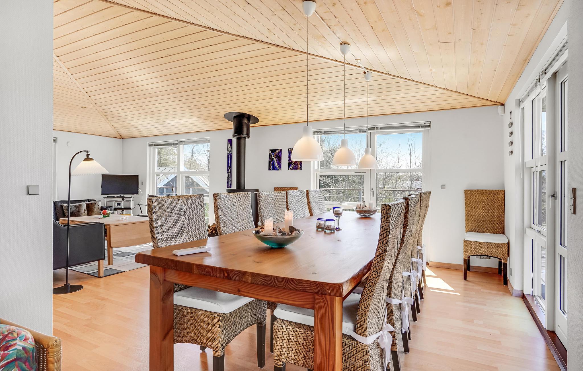 Velkommen til dette hyggelige feriehus, hvor I virkelig kan gå ned i gear og tilbringe en masse kvalitetstid sammen. Her er plads til en stor familie og op til to hunde. Huset er rummeligt, lyst og pænt indrettet. I kan blandt andet se frem til et stort og veludstyret køkken, hvor I kan tilberede lækre feriemåltider, samt en hyggelig opholdsstue med brændeovn og TV.