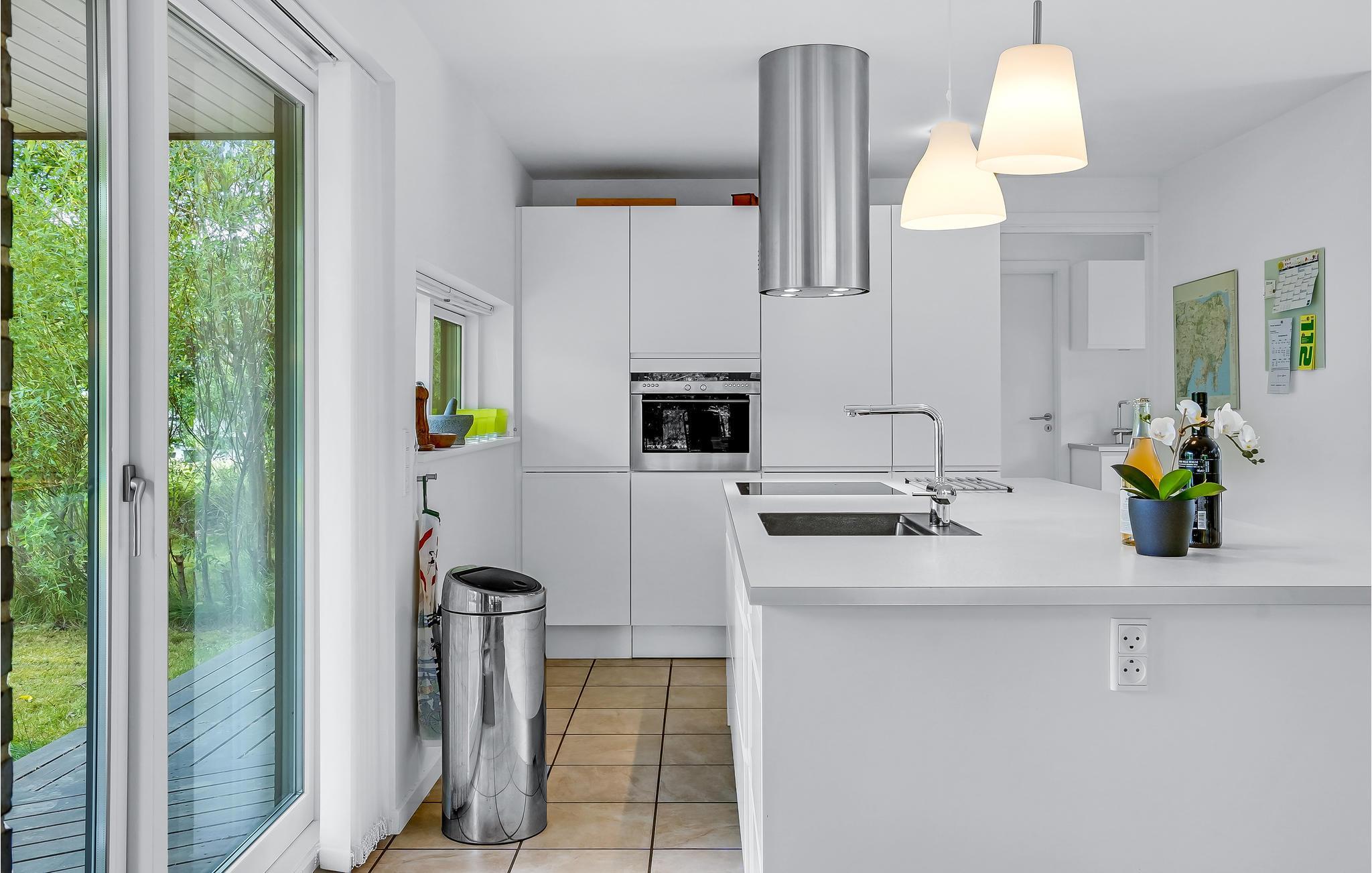 Flot og moderne sommerhus i Grenaa med terrasse, spabad og tæt på strand og havn.