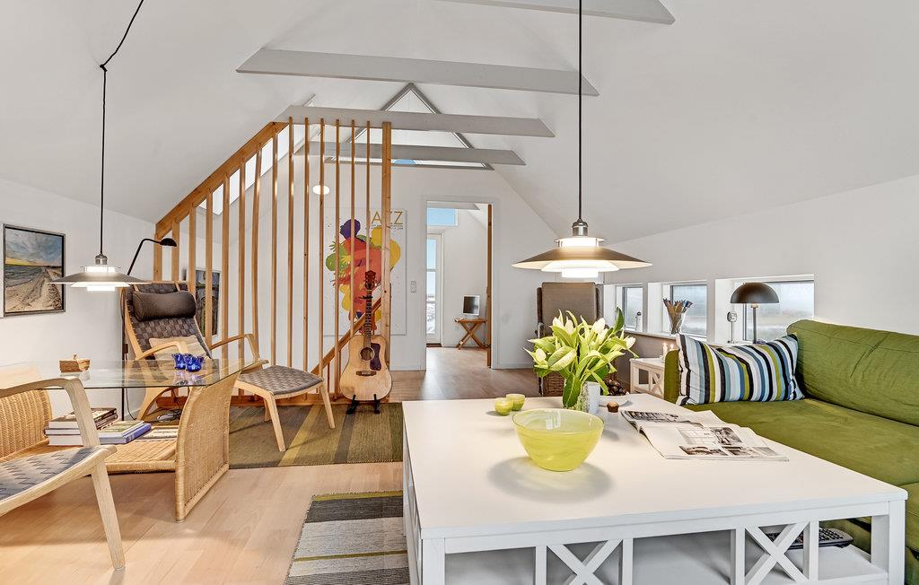 Maritimt rækkehus i Grenaa tæt på havet med smuk udsigt, terrasse og strand kun få meter væk.