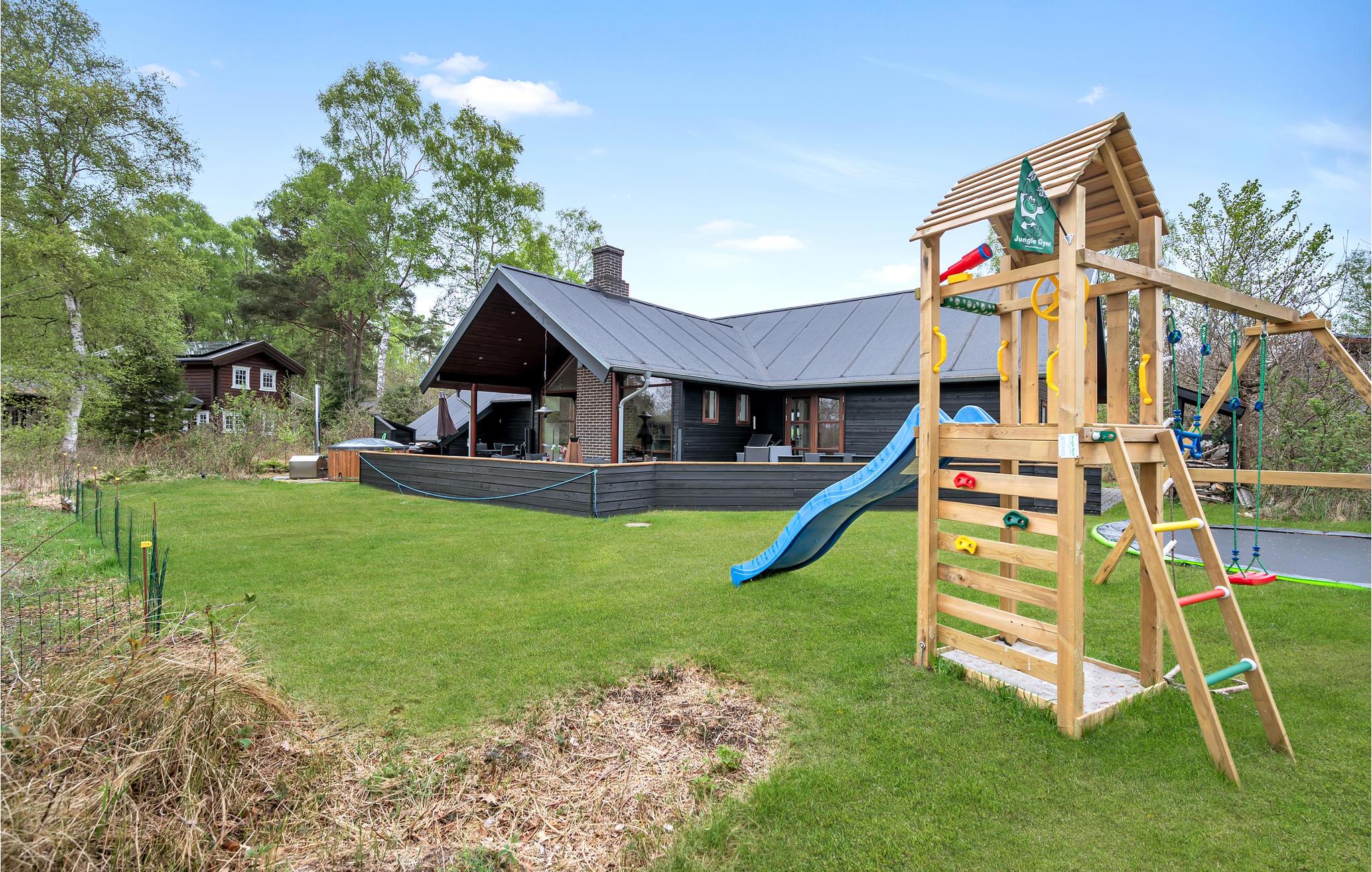 Dette autentiske træhus er ideelt til en eller to familier med kæledyr, der ønsker at holde en afslappende ferie sammen på Djursland. Huset er moderne, elegant og indrettet med stilfulde møbler. Her kan I hygge jer foran brændeovnen eller med et glas vin i stuen. Store vinduer lukker dejligt meget dagslys ind, og højt til loftet skaber en åben, rummelig atmosfære. Den åbne terrasse med havemøbler og grill er det perfekte sted at nyde feriens måltider og holde hyggelige grillaftener. Det finske vildmarksbad indbyder til rendyrket ferieafslapning med en drink i hånden.