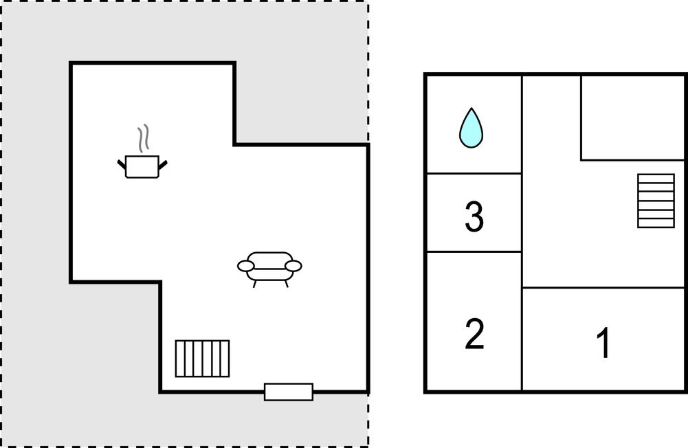 Komb. spisestue/køkken - 2 Sovepladser. (Sofa, madras eller lignende).