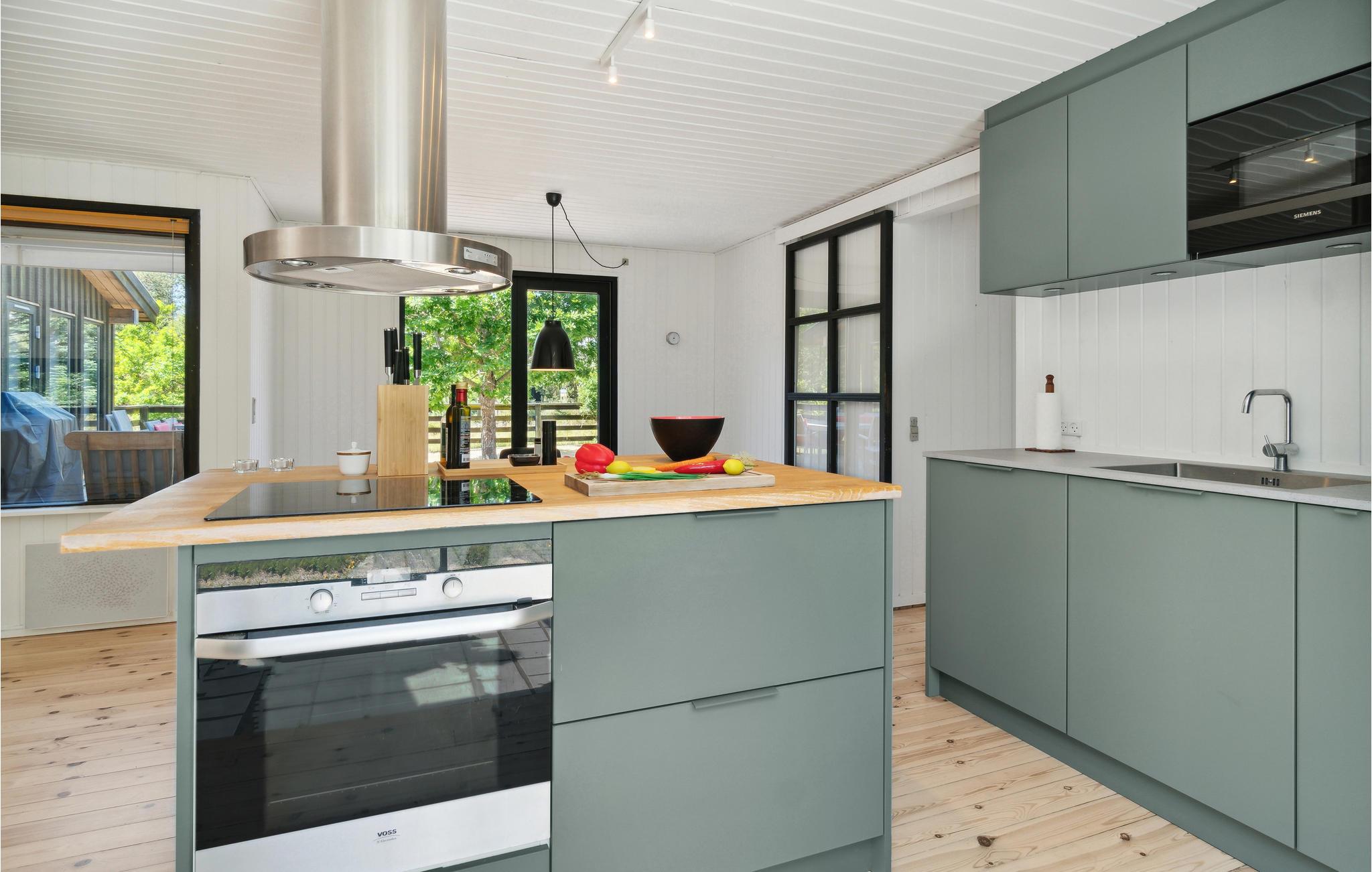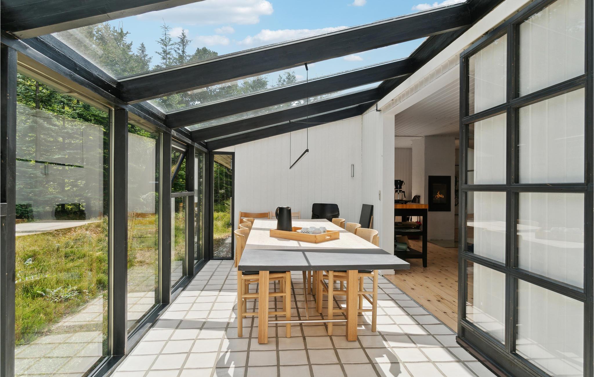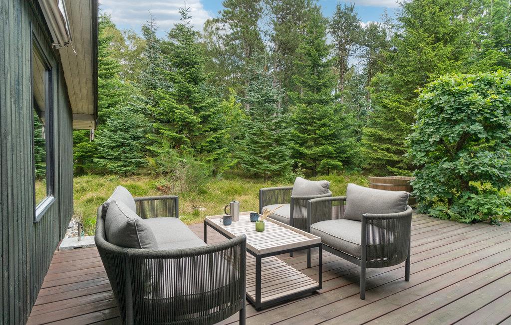 På en ugeneret grund foran en væg af skovens smukke, tårnhøje træer lige uden for Grenaa støder I på dette smagfuldt indrettede feriehus med moderne og lyse elementer. Sammen med jeres store familie eller en vennefamilie kan I slappe af og nyde en skøn ferietid med brætspilsaftener, fælles madlavning og leg. Det bliver især sjovt at lave mad sammen i det veludstyrede køkken. Udestuen passer godt til matador med forfriskninger og snacks, og den skønne, store terrasse inviterer til grillhygge, kortspil og turplanlægning. Gå en tur i den skyggefulde skov eller gå ned til den familievenlige sandstrand. Lystfiskere kan også prøve lykken og forhåbentlig fange nogle fisk til aftensmaden.