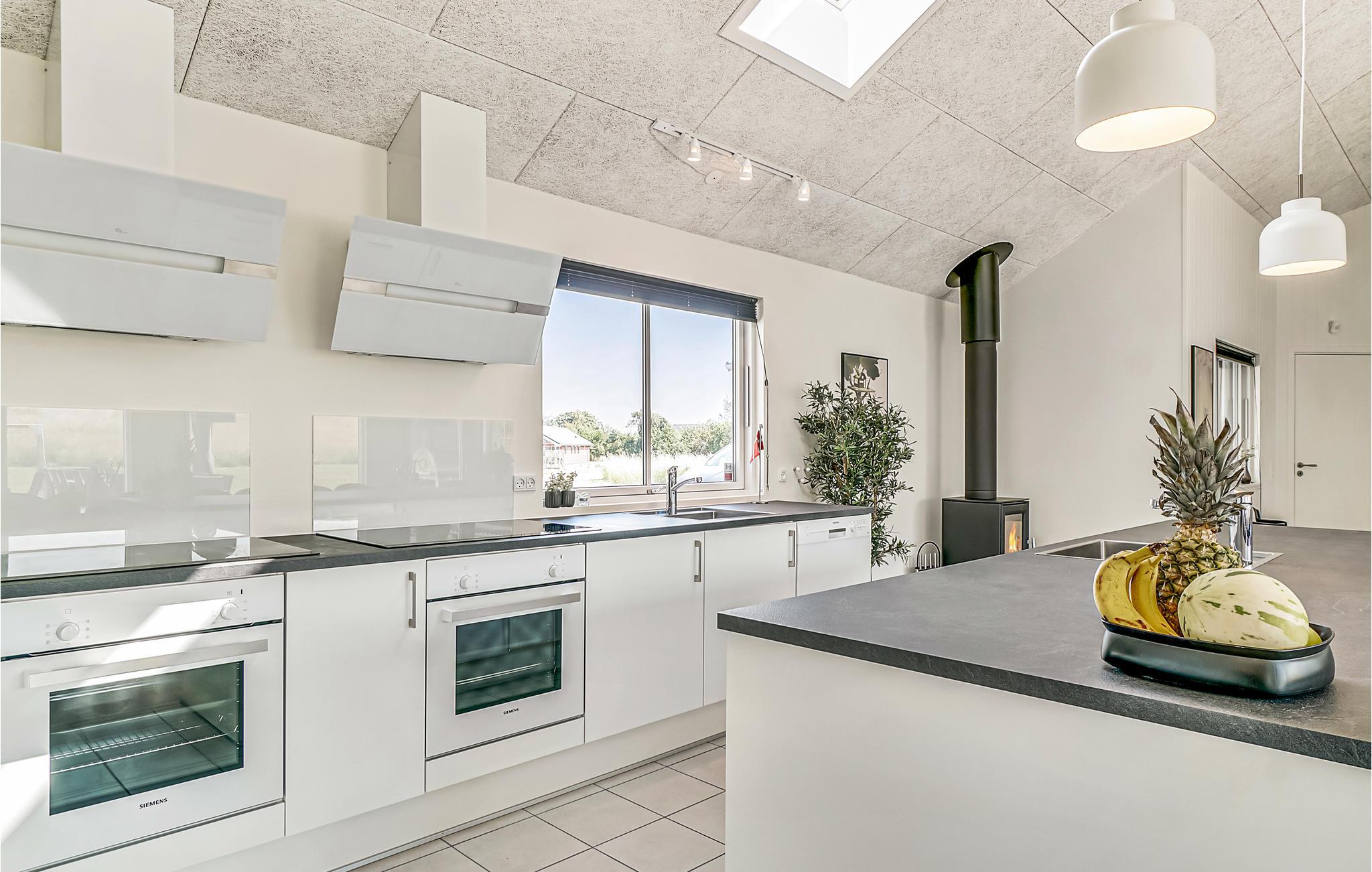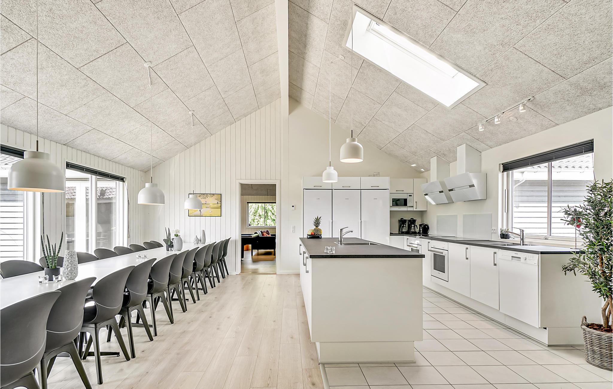 I sommerhuset er et dejlig stort køkkenalrum, med direkte udgang til terrassen, hvor familien kan samles til måltiderne. Det velindrettede køkken er godt udstyret med 2 køleskabe, komfurer, ovne, vaske, opvaskemaskiner, 1 fryser og 1 mikrobølgeovn.