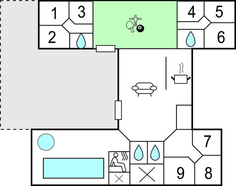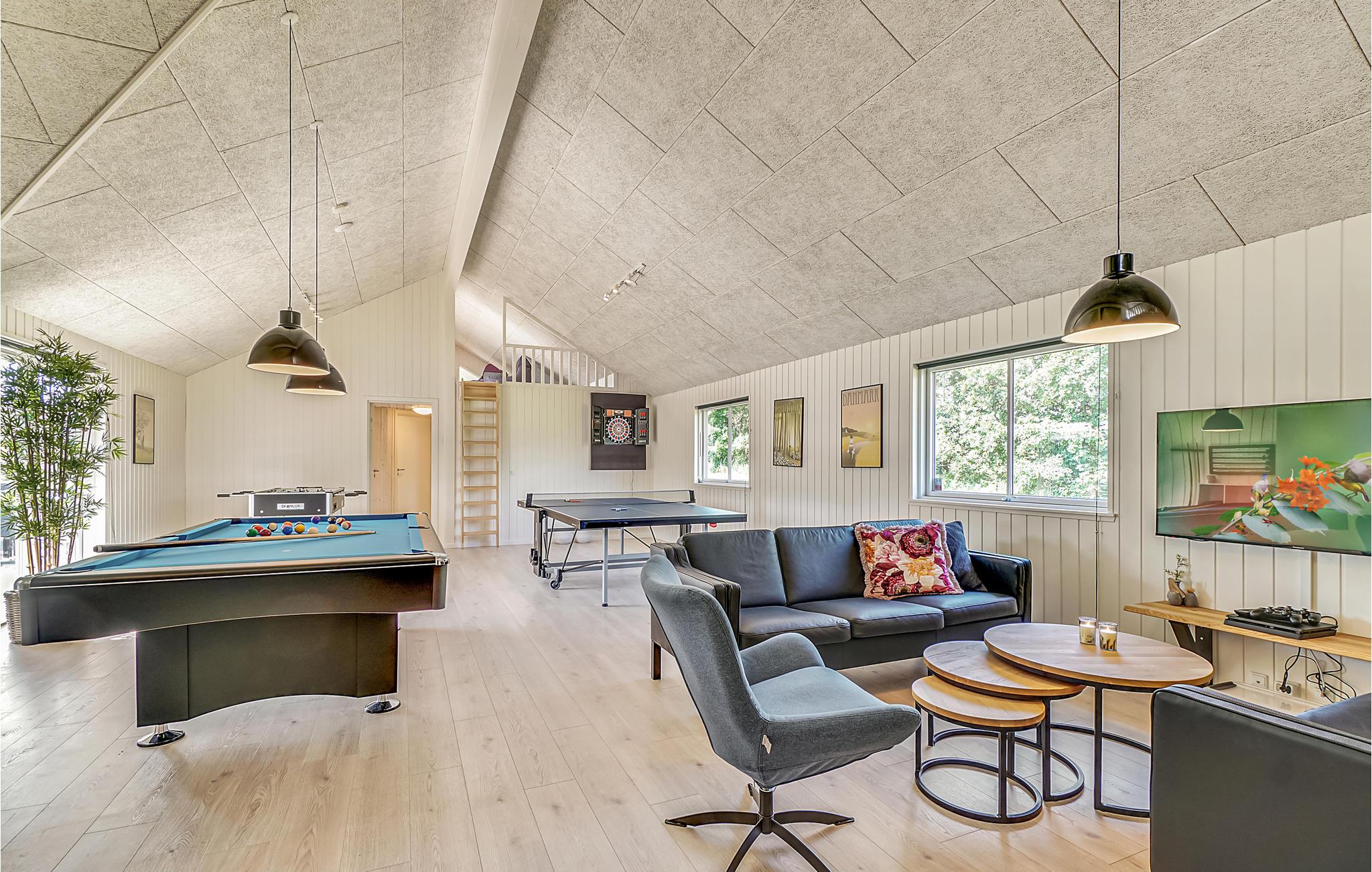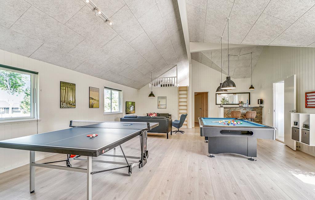 I den ene ende af sommerhuset ligger det populære aktivitetsrum, hvor I kan dyste i et slag billard eller spille en omgang bordtennis, dart eller bordfodbold. Her er god plads til fart over feltet. Fra baren i hjørnet er der plads til tilskuere. Baren er udstyret med vinkøleskab, så I kan nyde et glas vin med den helt rigtige temperatur. Der er også mulighed for at slappe af i sofakrogen eller spille Play Station 4. ( DVD)