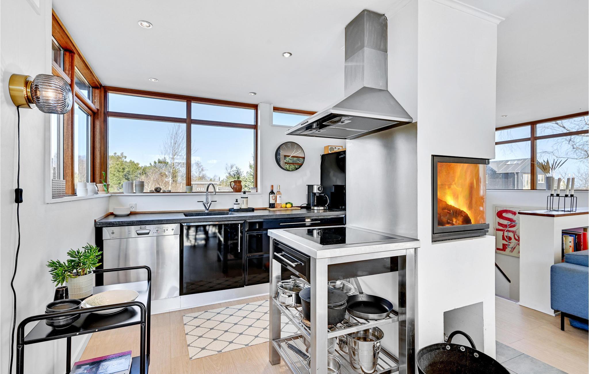 Pragtfuldt arkitekthus nær stranden i charmerende Grenå med spabad og moderne faciliteter.